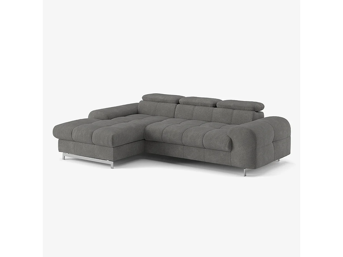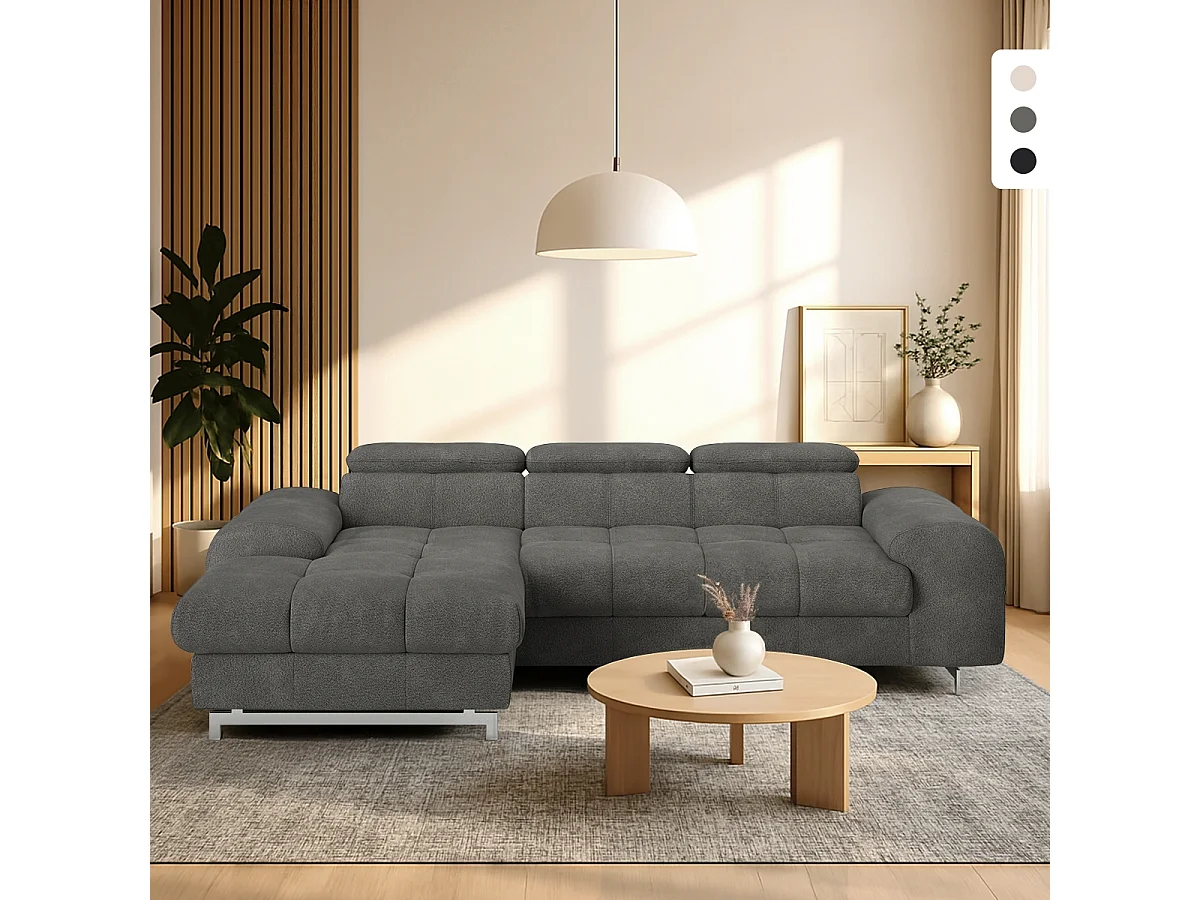 Divano 3 posti angolare con penisola sinistra poggiatesta regolabile Liora - Grigio Scuro
