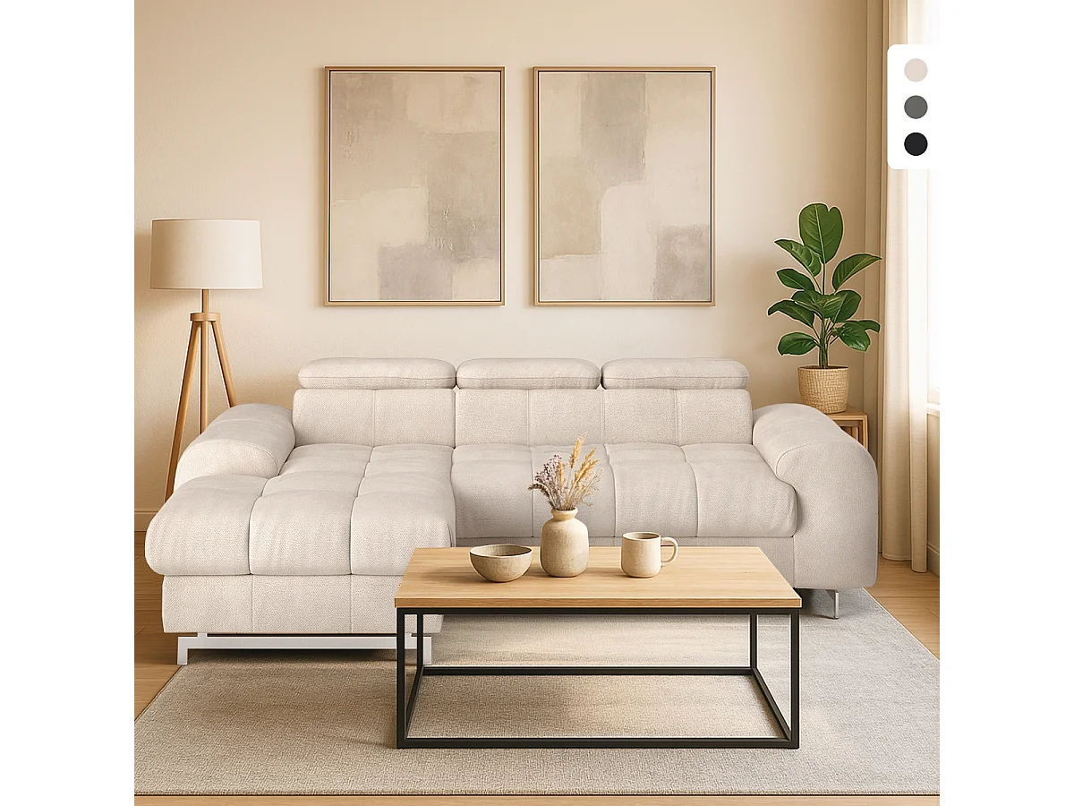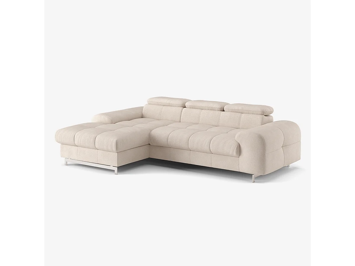 Divano 3 posti angolare con penisola sinistra poggiatesta regolabile Liora - Beige