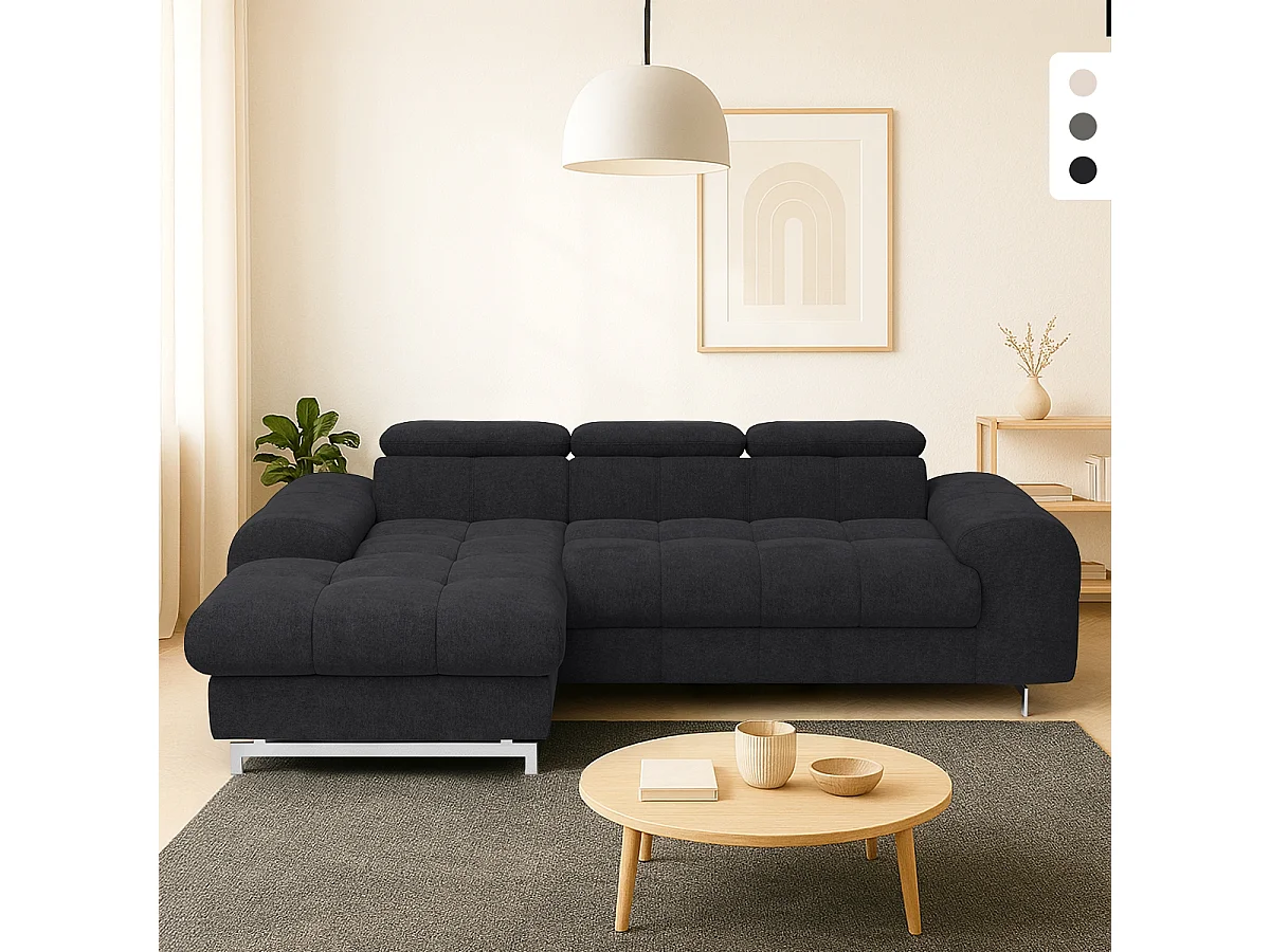 Divano 3 posti con penisola a sinistra e poggiatesta regolabile Tivon - Nero