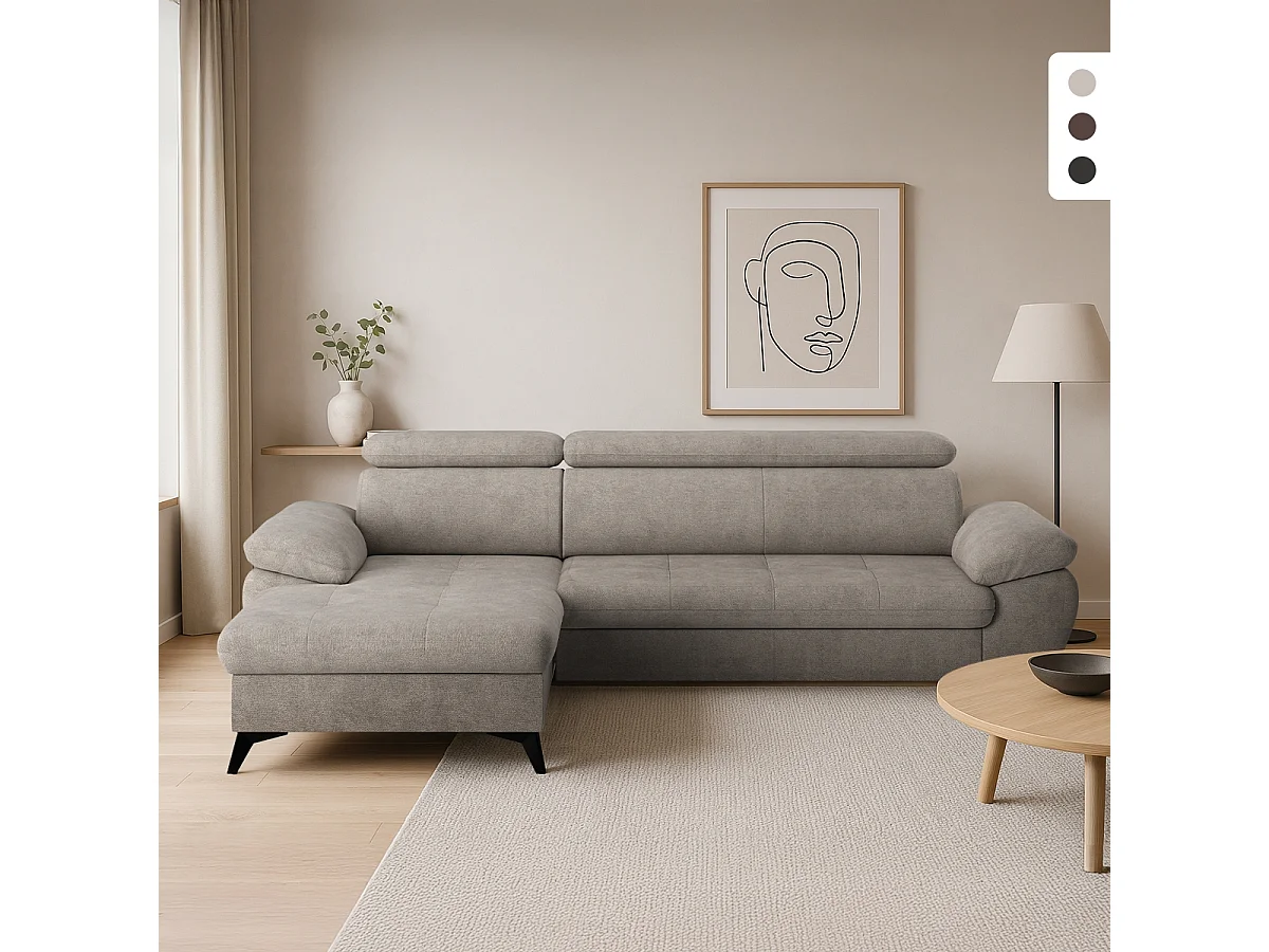 Divano 3 posti moderno con penisola destra poggiatesta regolabile Torav - Grigio