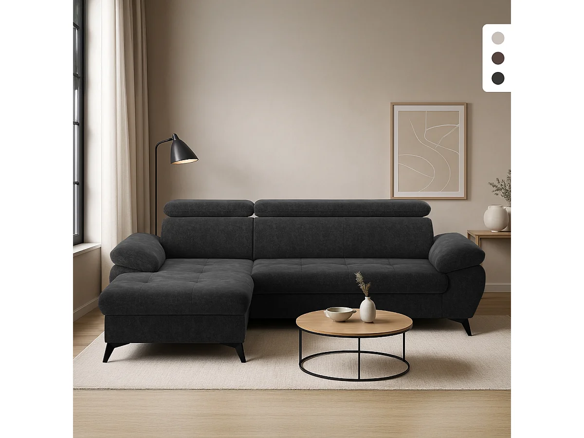 Divano 3 posti con penisola a sinistra e poggiatesta regolabile Tivon - Nero
