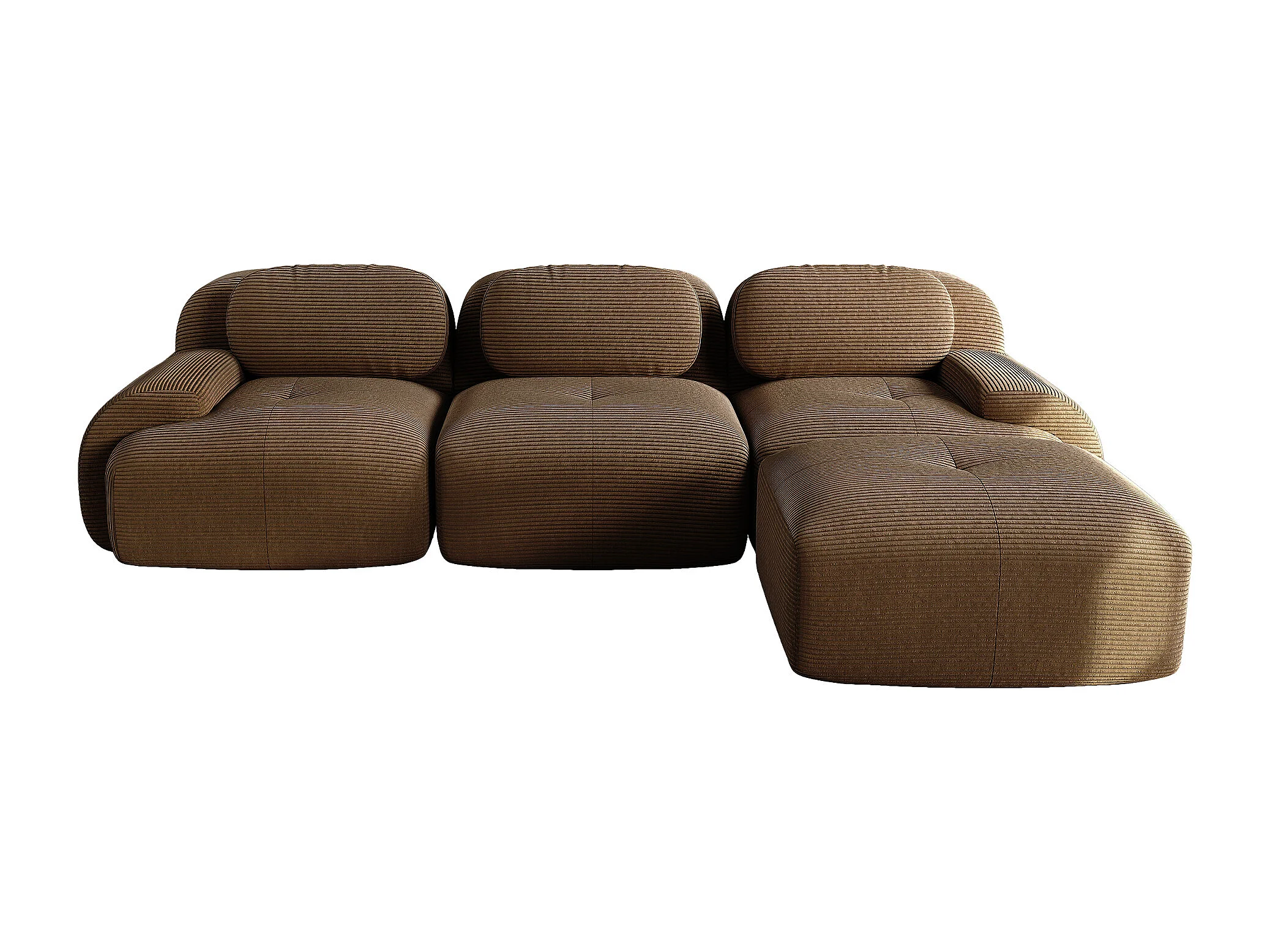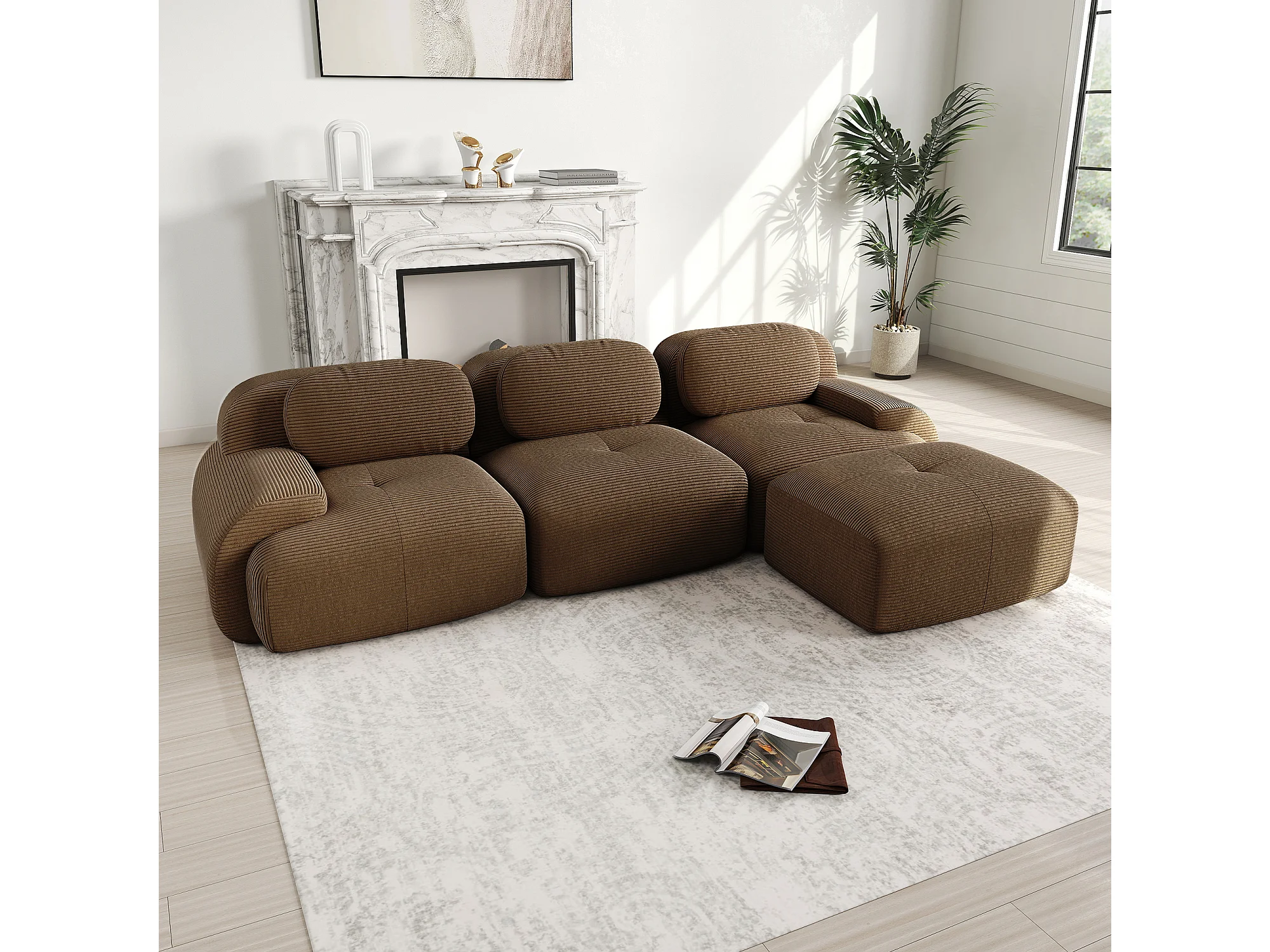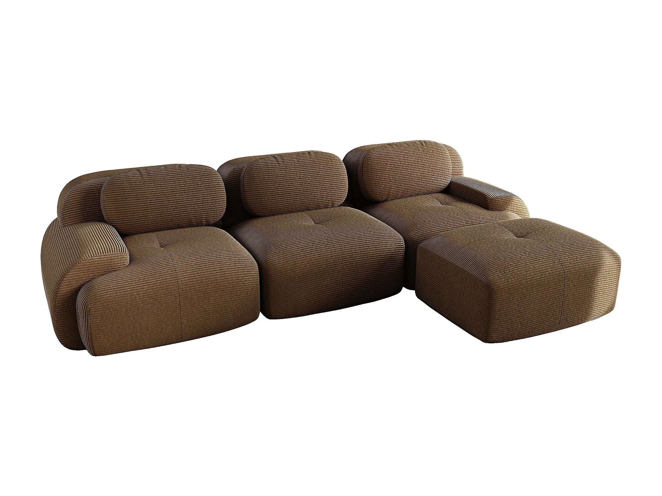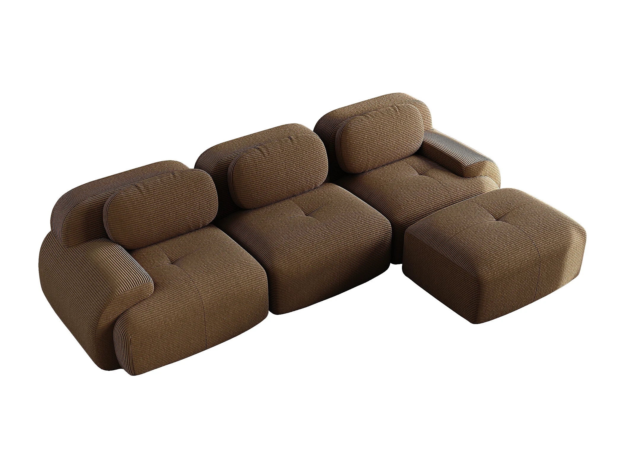 Divano 3 posti con poggiapiedi e cuscini - Velluto a coste - Marrone, non necessita di montaggio