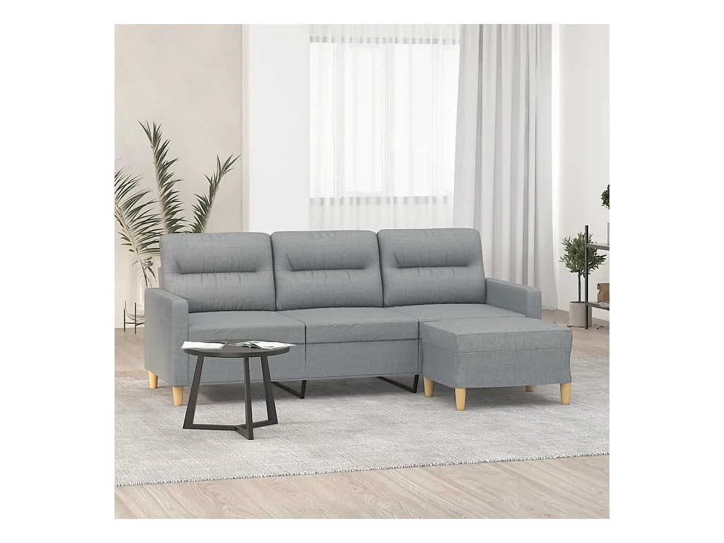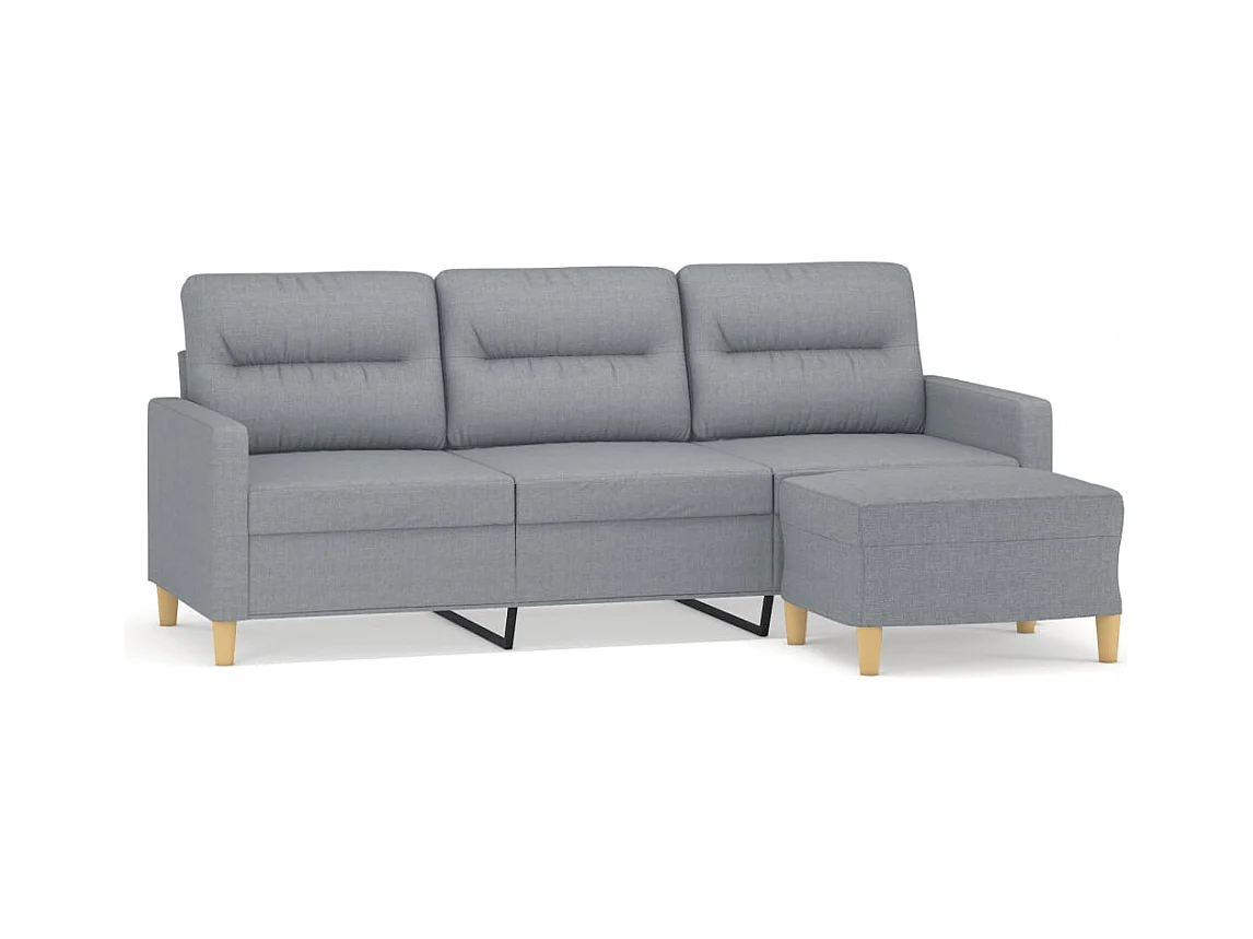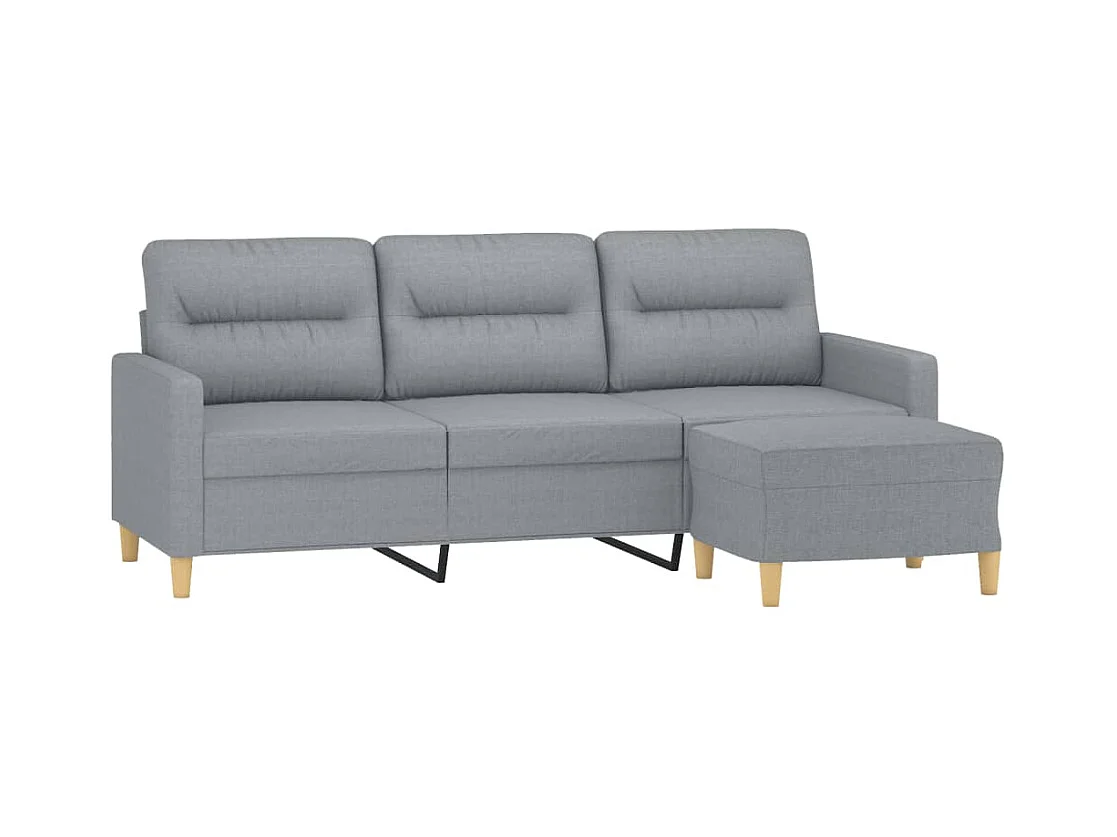 Divano 3 posti con poggiapiedi Grigio chiaro 180 cm Tessuto