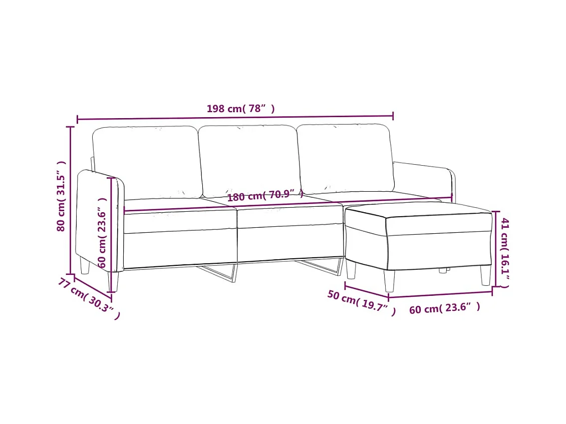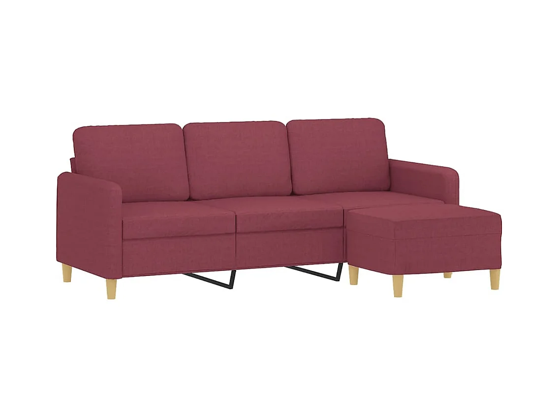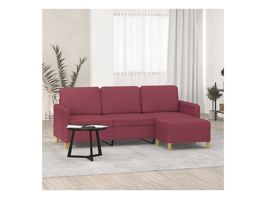 Divano 3 posti con poggiapiedi Rosso bordeaux 180 cm Tessuto