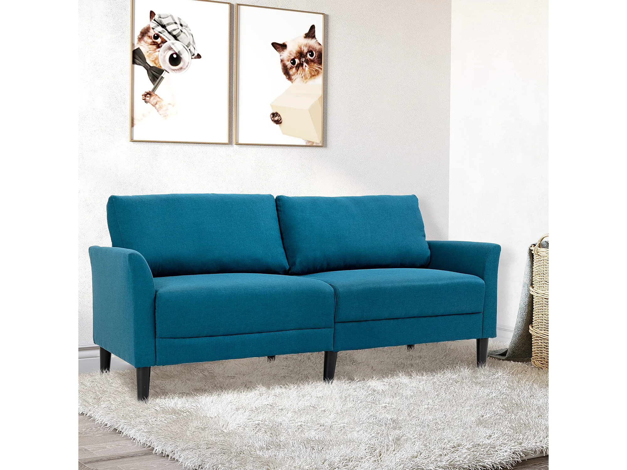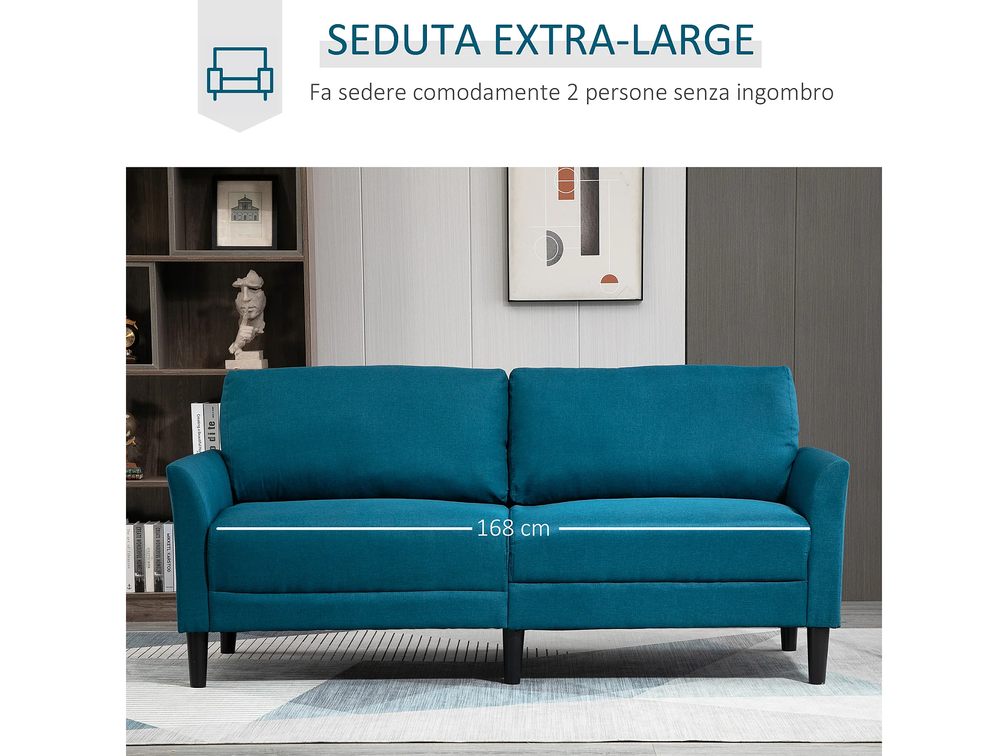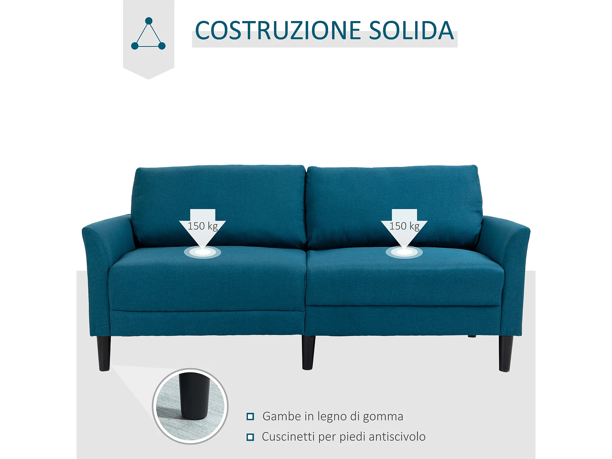 Divano 3 posti con seduta profonda e imbottitura spessa in tessuto blu