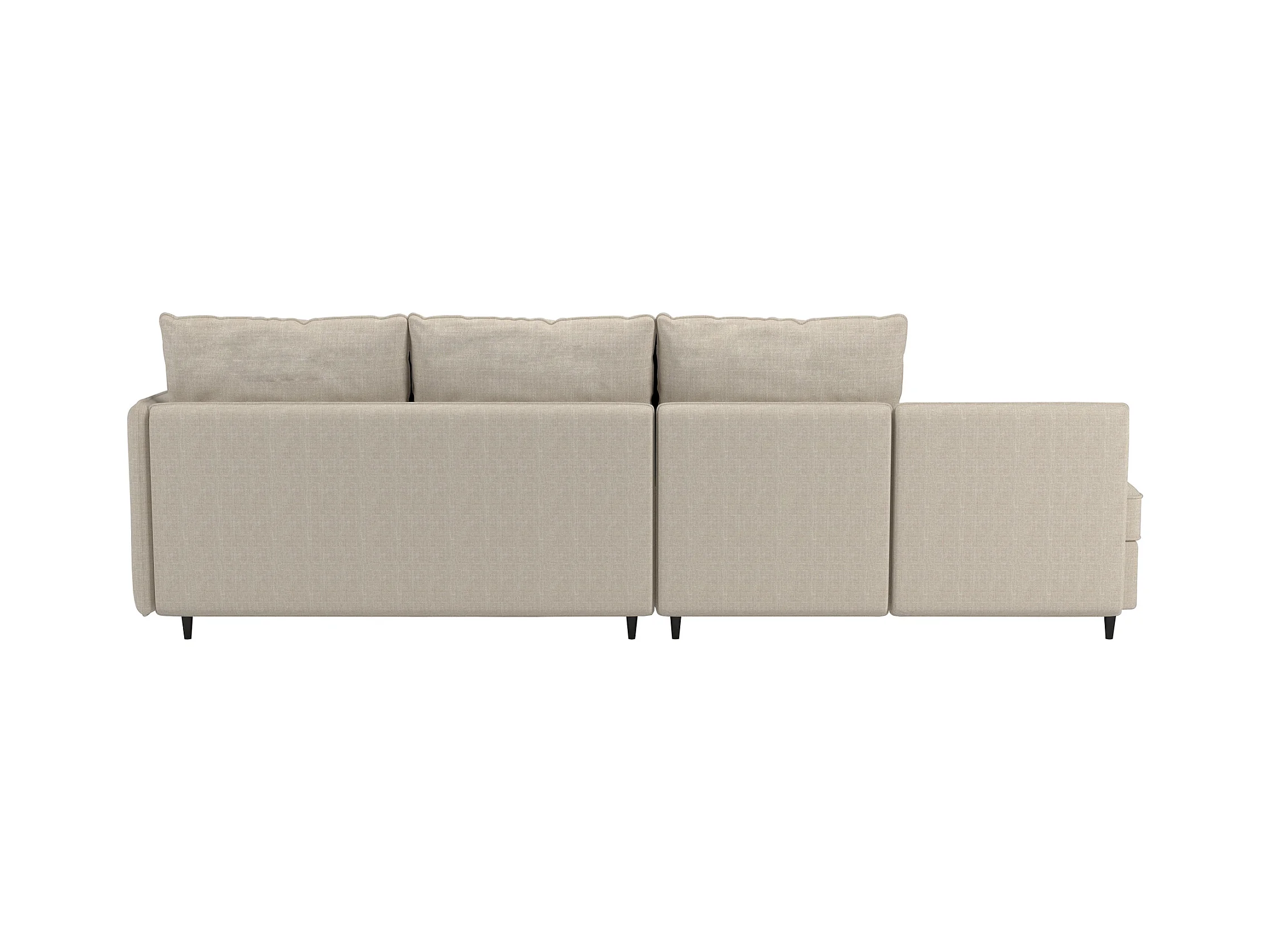 Divano 3 posti con vano portaoggetti/chaise longue reversibile in tessuto crema