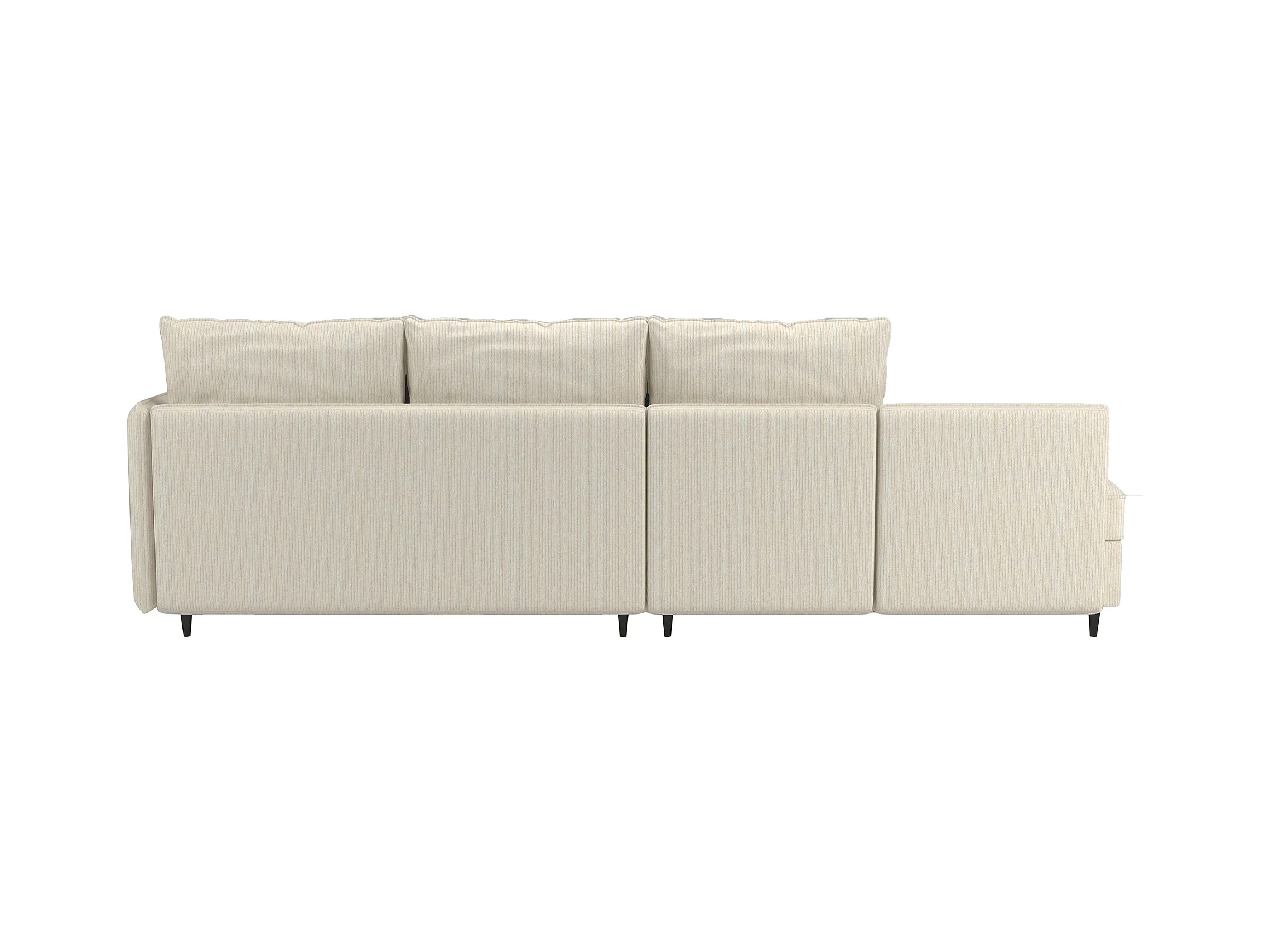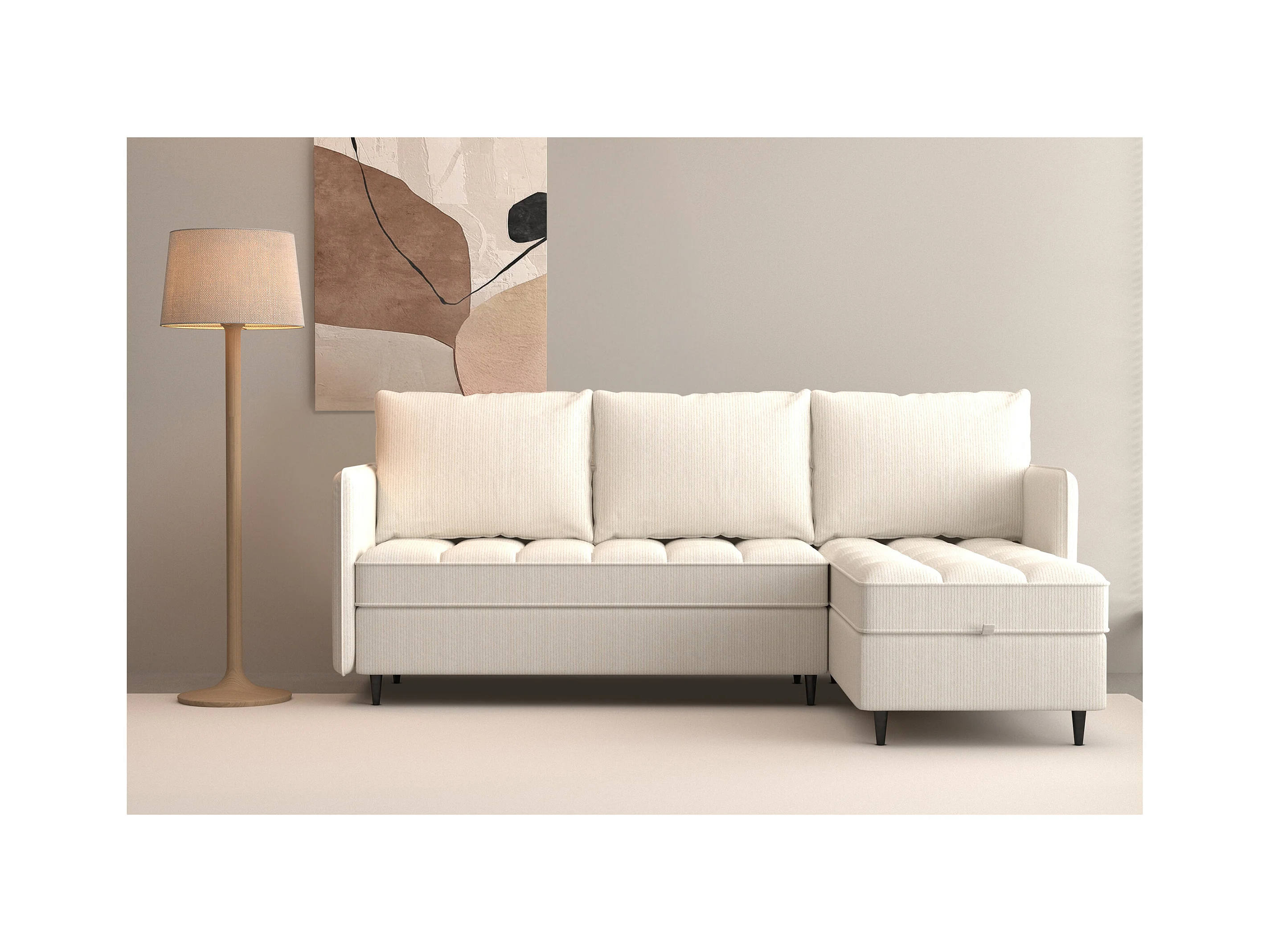 Divano 3 posti con vano portaoggetti/chaise longue reversibile in tessuto crema