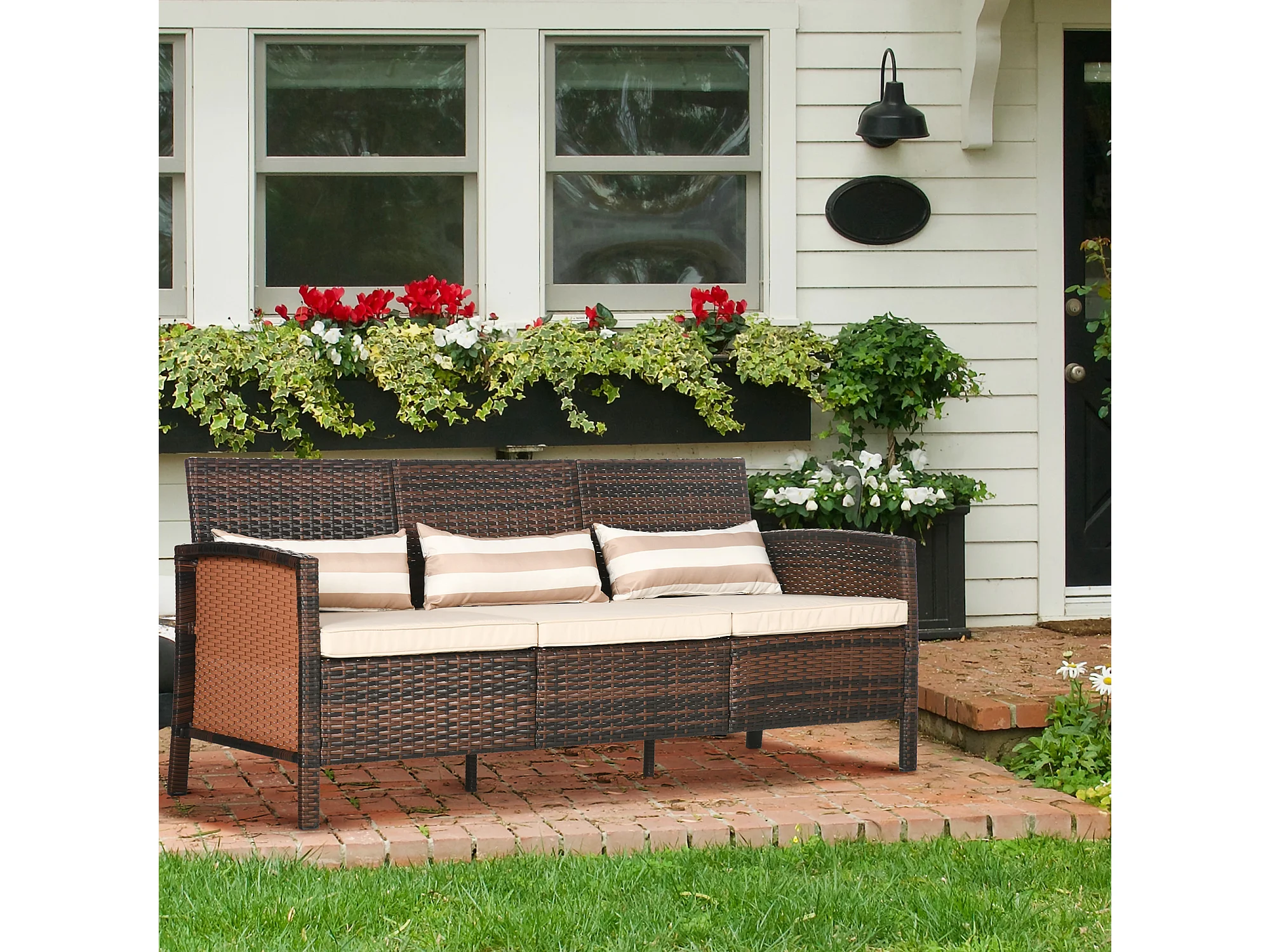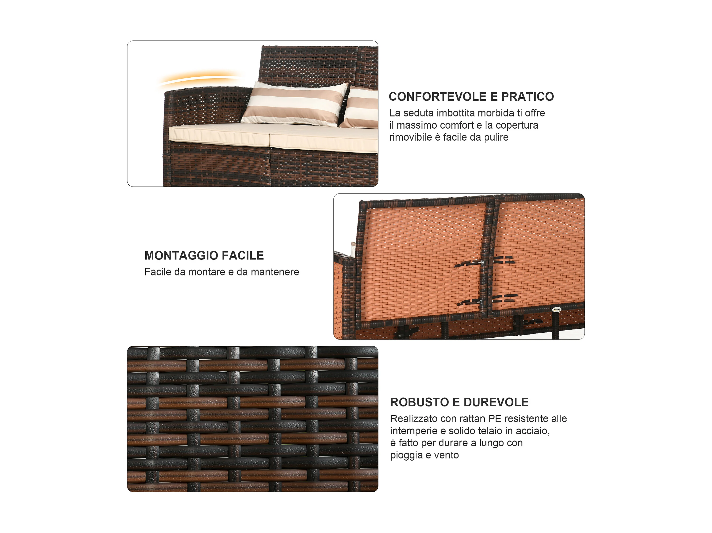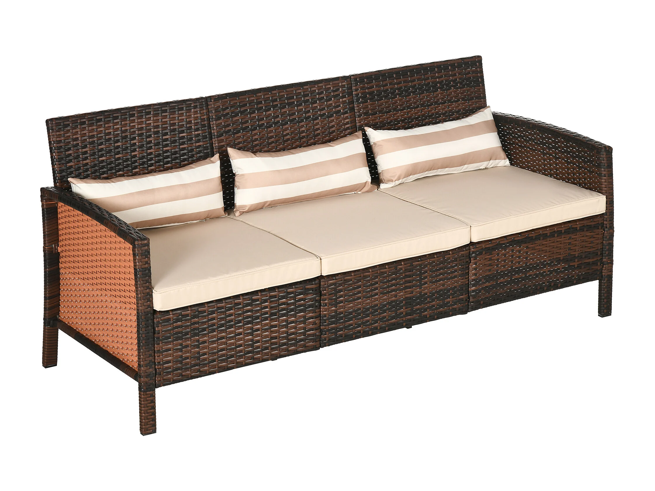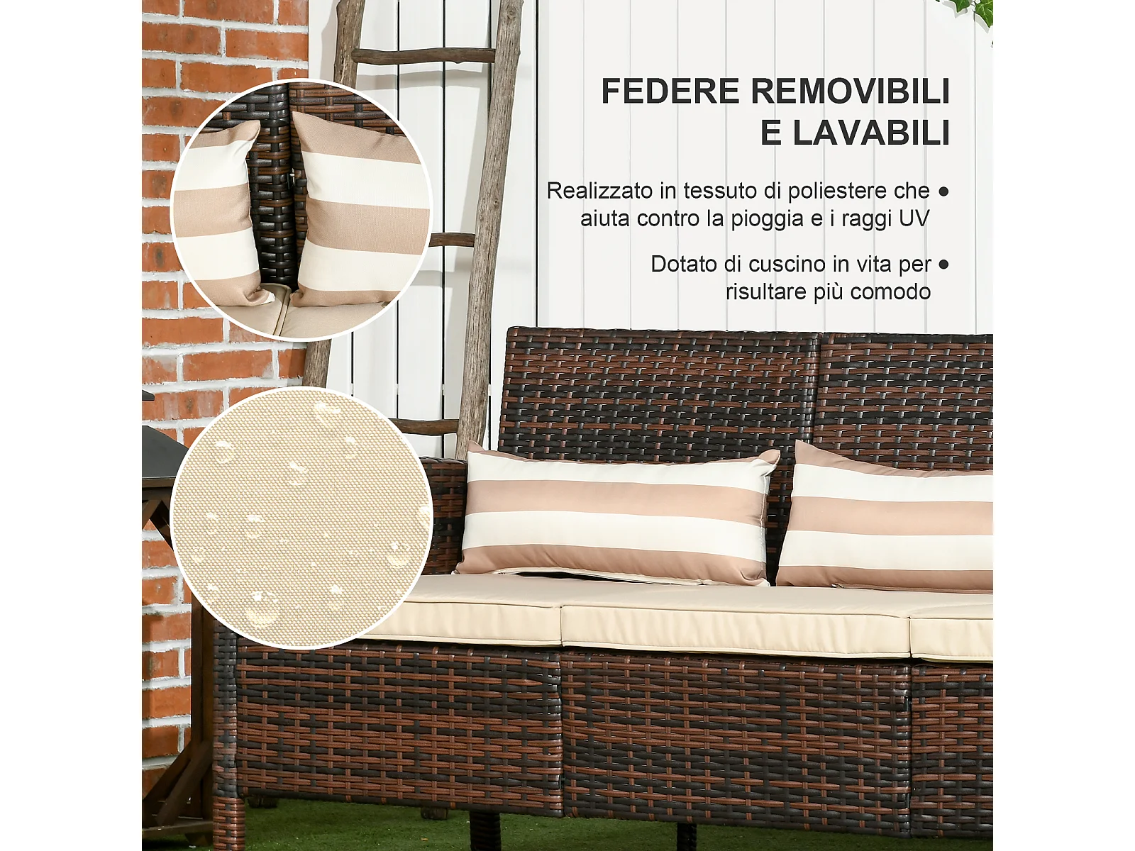 Divano 3 posti da esterno con cuscini in rattan pe marrone