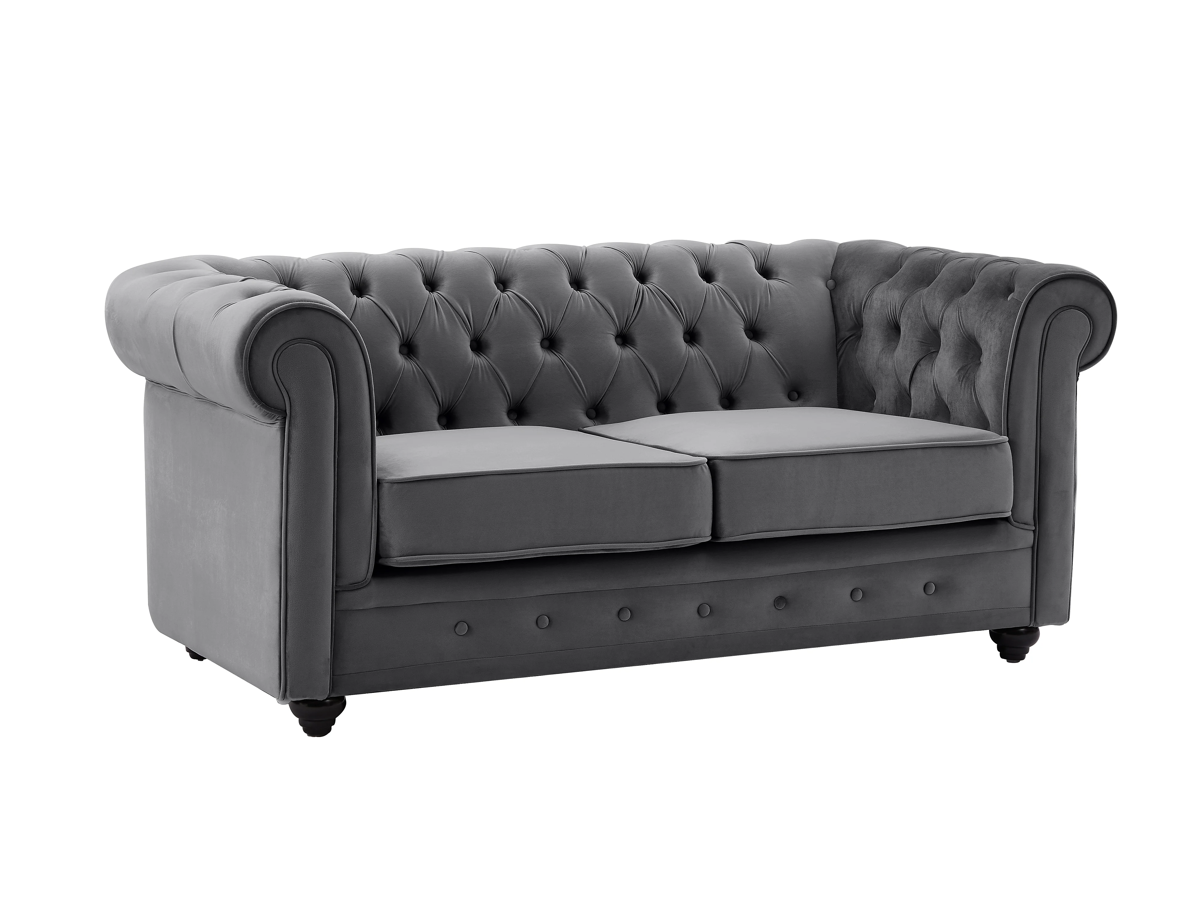 Divano 3 posti e 2 posti in Velluto Antracite - CHESTERFIELD