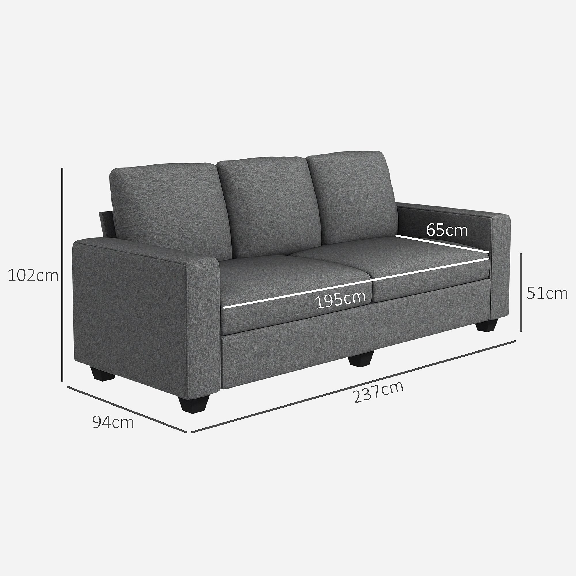 Divano 3 posti in tessuto effetto lino 237x94x102cm grigio