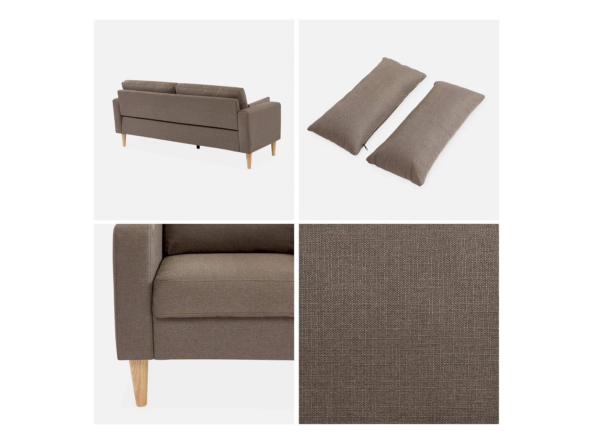 Divano a 3 Posti con Cuscini Marrone 180 cm in Tessuto