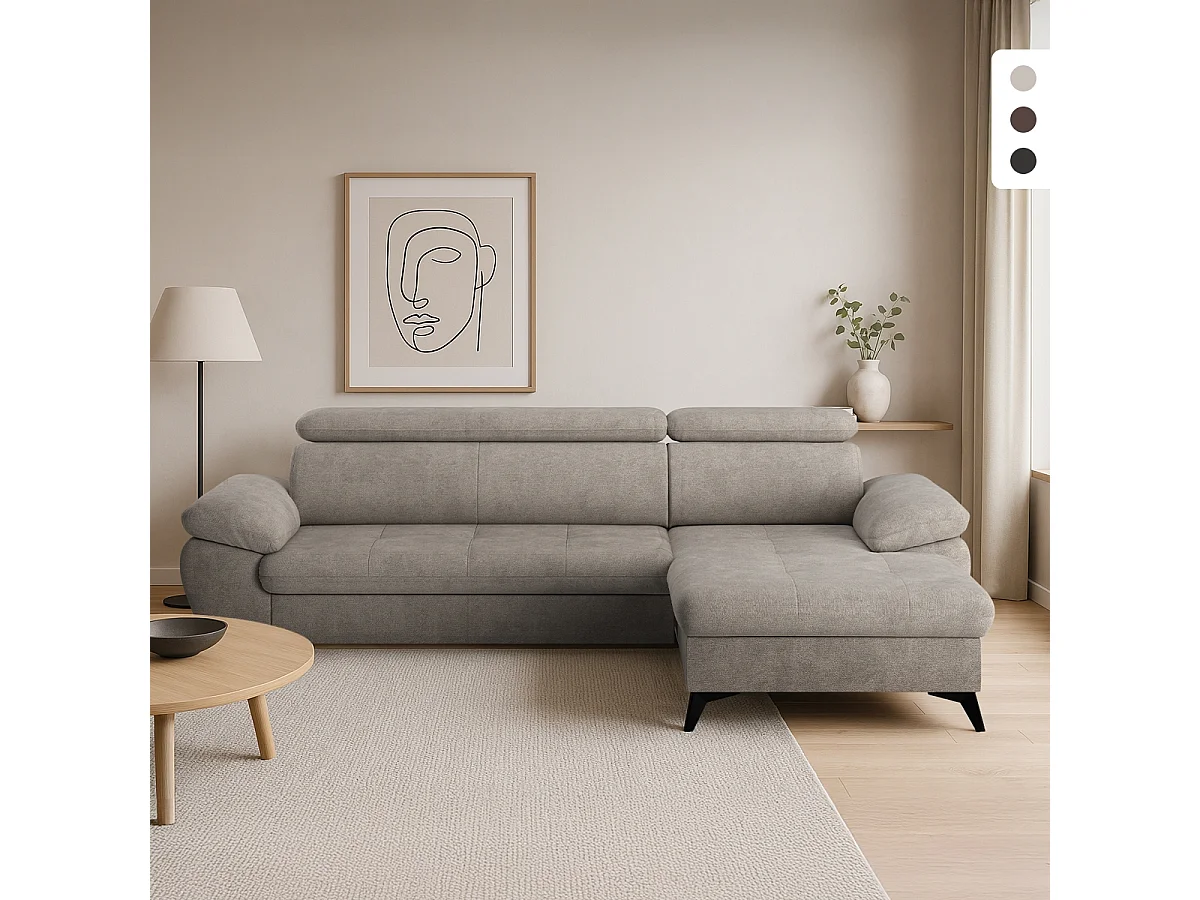 Divano 3 posti moderno con penisola destra poggiatesta regolabile Torav - Grigio