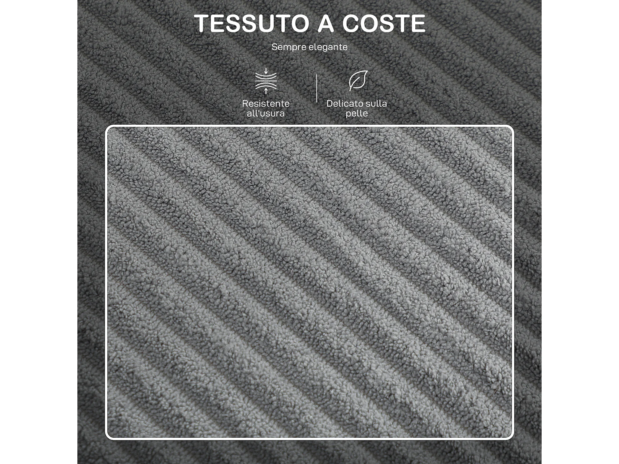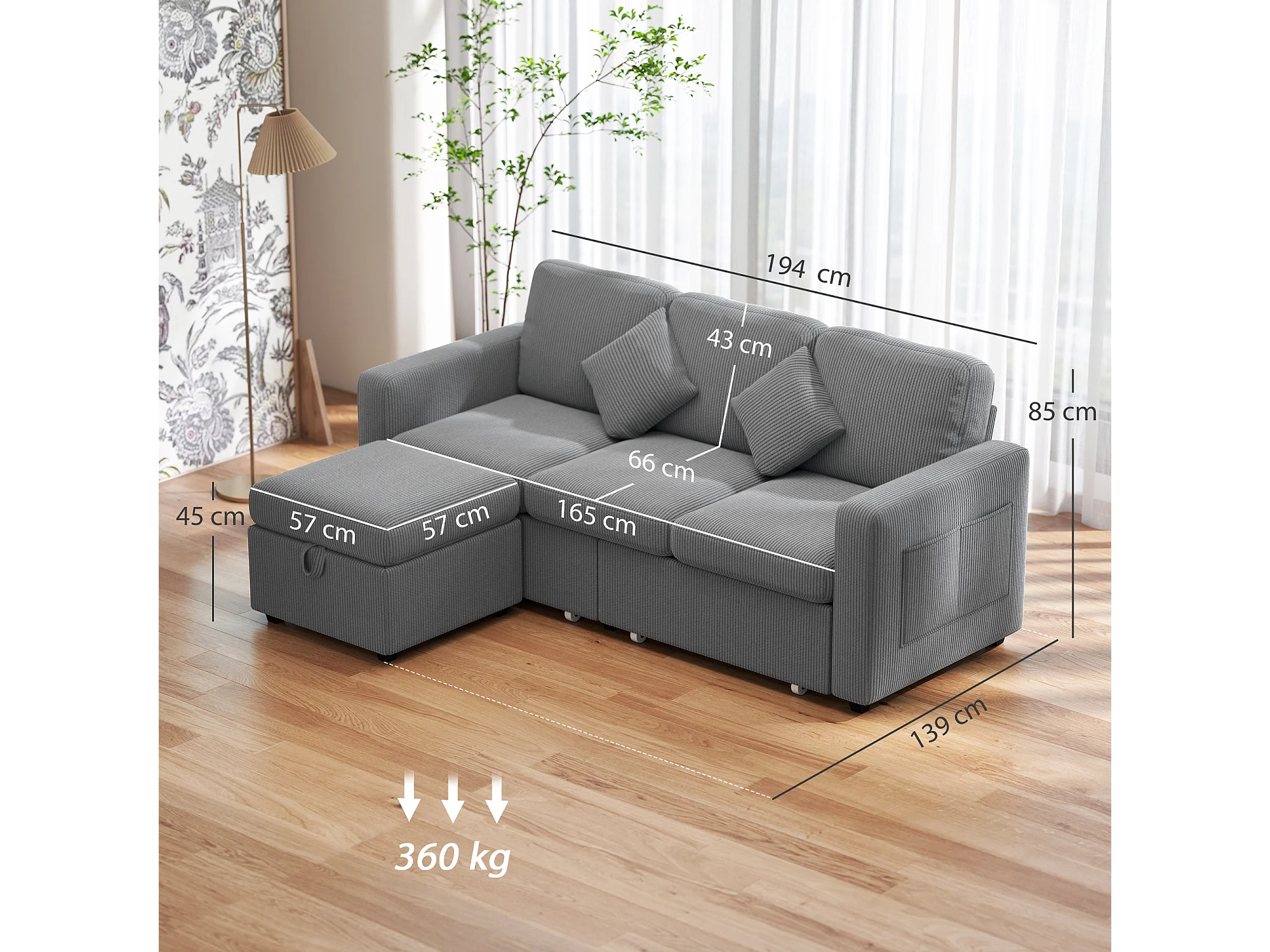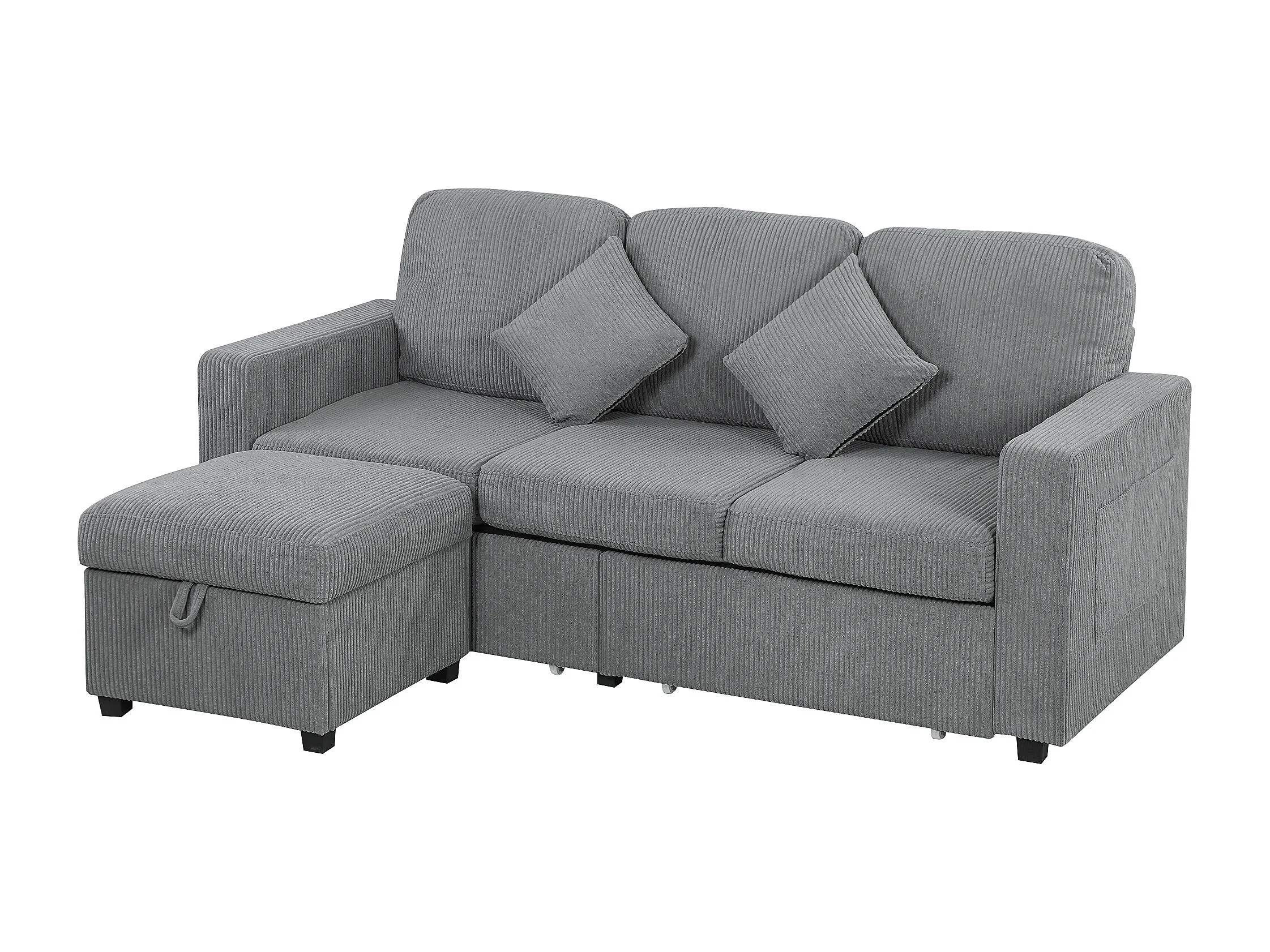 Divano 3 posti modulare con pouf contenitore in velluto a coste grigio