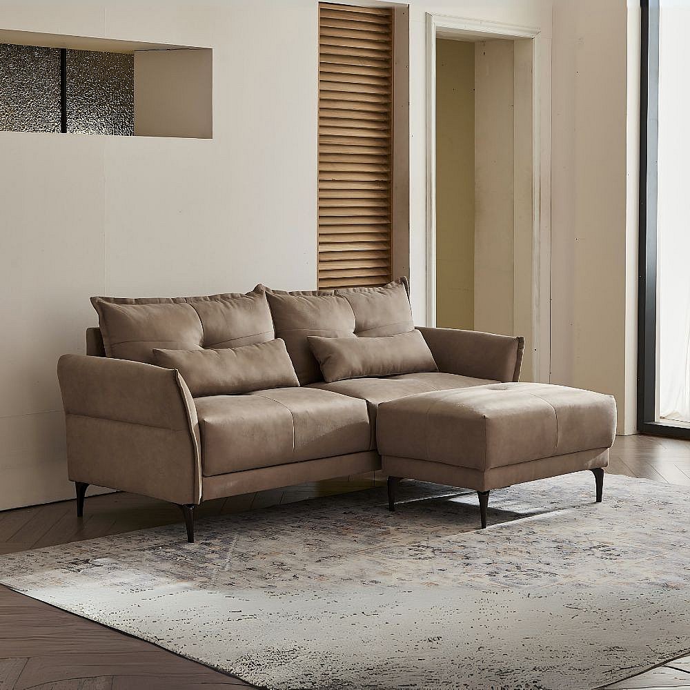 Divano 3 Posti Nutmeg con pouf in tessuto beige 196x76x86H