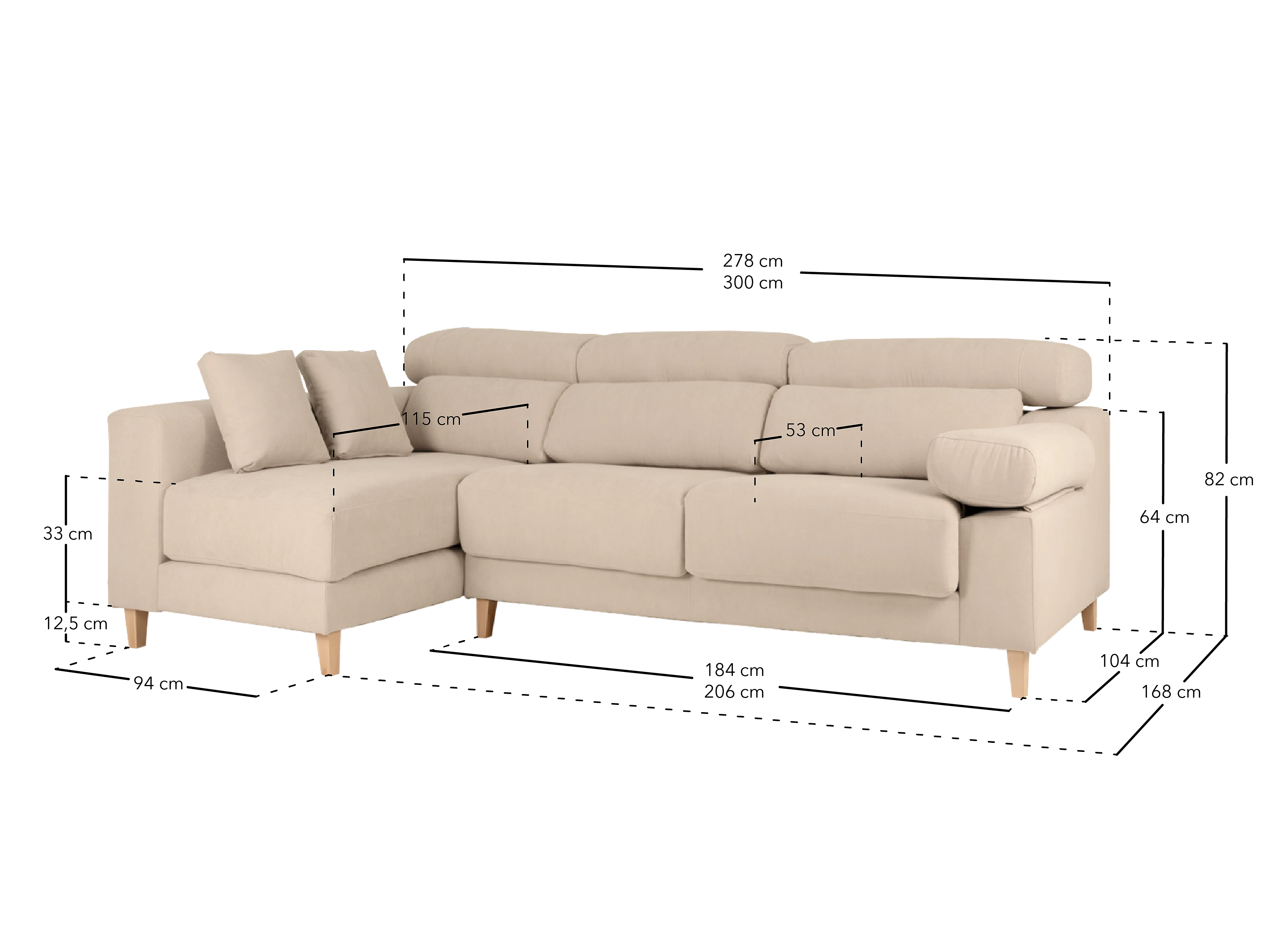 Divano 4 posti con chaise longue sul lato destro colore beige 278cm