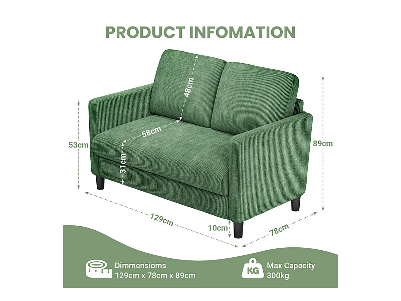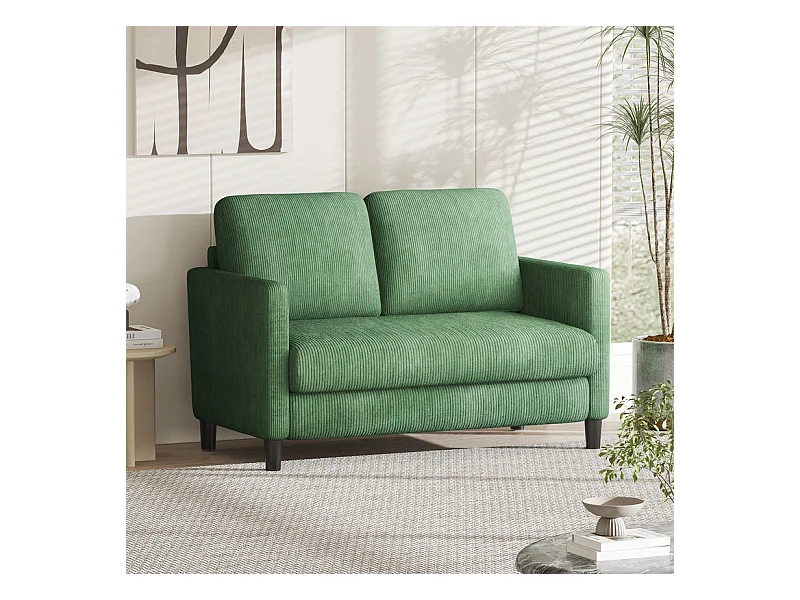 Divano a 2 posti comodo in velluto costato Verde - seduta profonda 58cm - carico max 300kg - 129x78x89cm
