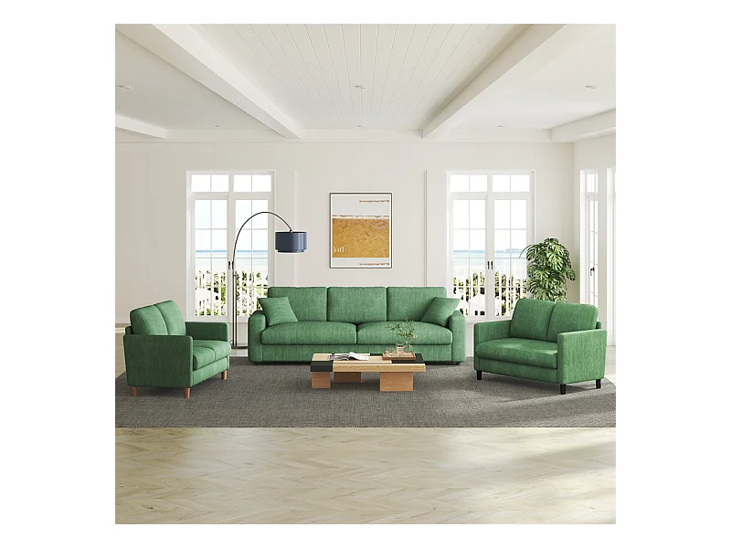 Divano in velluto verde moderno a 2 usatro, braccioli imbottiti, legno massiccio, legno morbido, 143x77x86cm