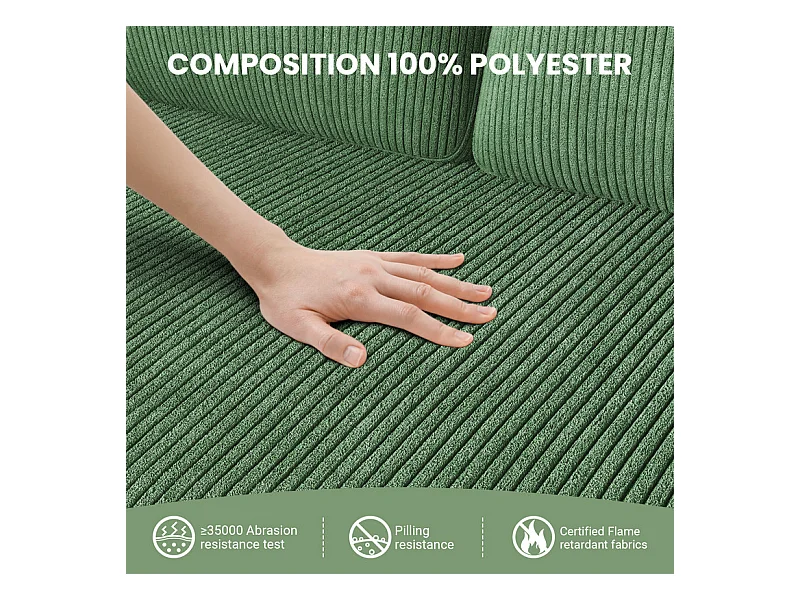 - Divano in velluto a coste a costine da 2, grande divano destro imbottito moderno con sedili extra profondi da 56 cm - 2 cuscini - 178x76x89cm - verde