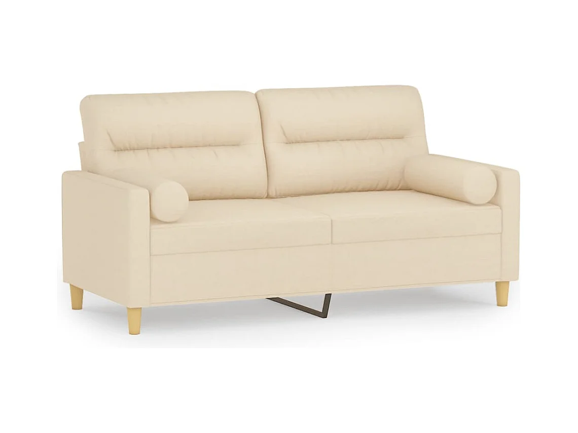 Divano a 2 Posti con Cuscini Crema 140 cm in Tessuto