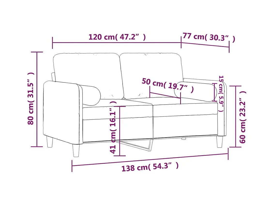 Divano a 2 Posti con Cuscini Rosso Vino 120 cm in Tessuto