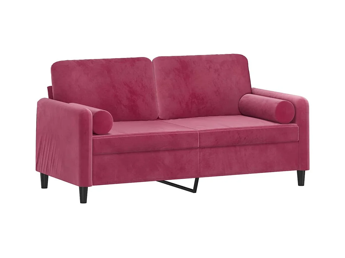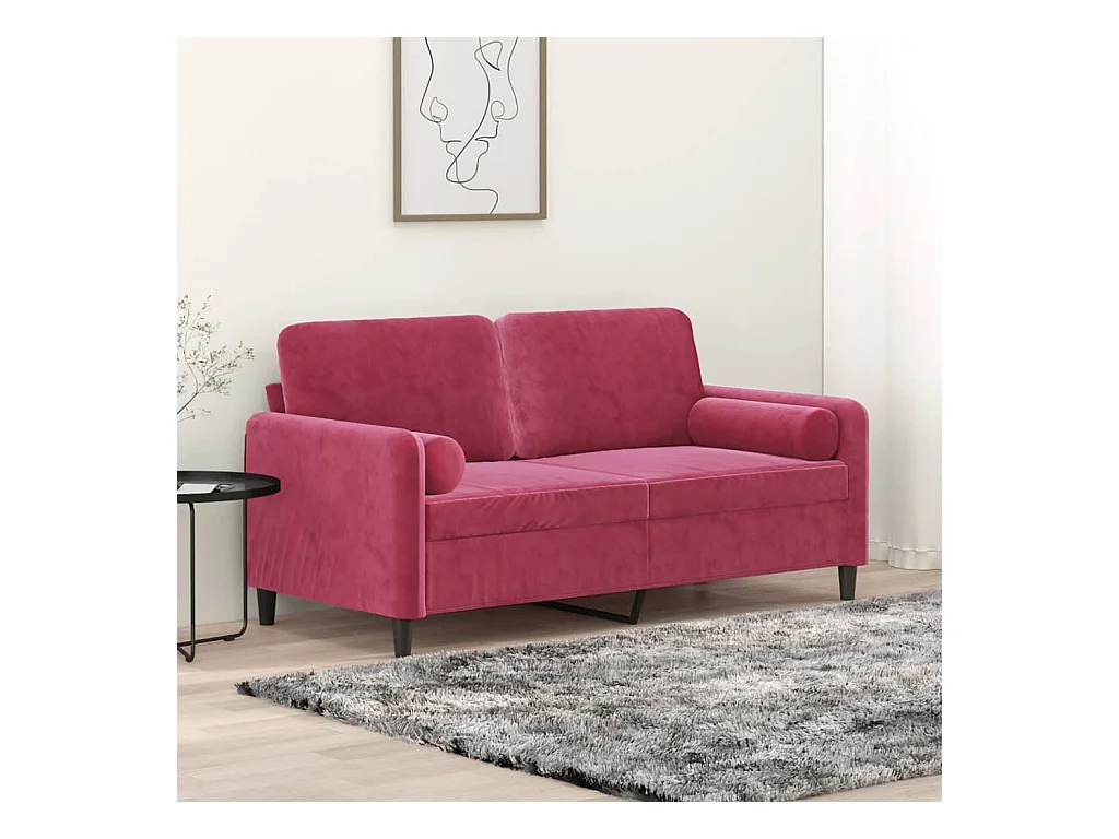 Divano a 2 Posti con Cuscini Rosso Vino 140 cm in Velluto