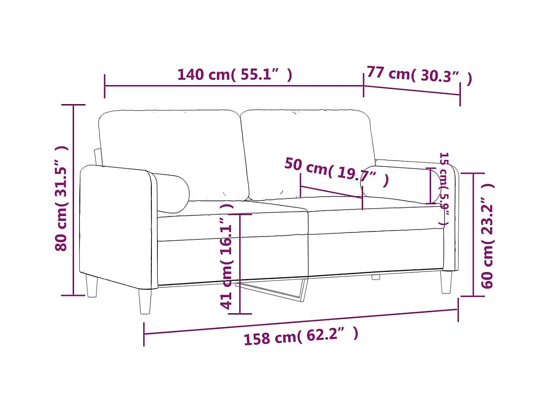 Divano a 2 Posti Rosso Vino 140 cm in Tessuto