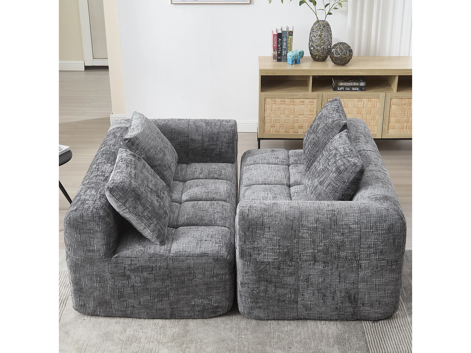 Divano a 2 posti grigio - Divano dritto con cuscini e tasche portaoggetti - fantasia neve