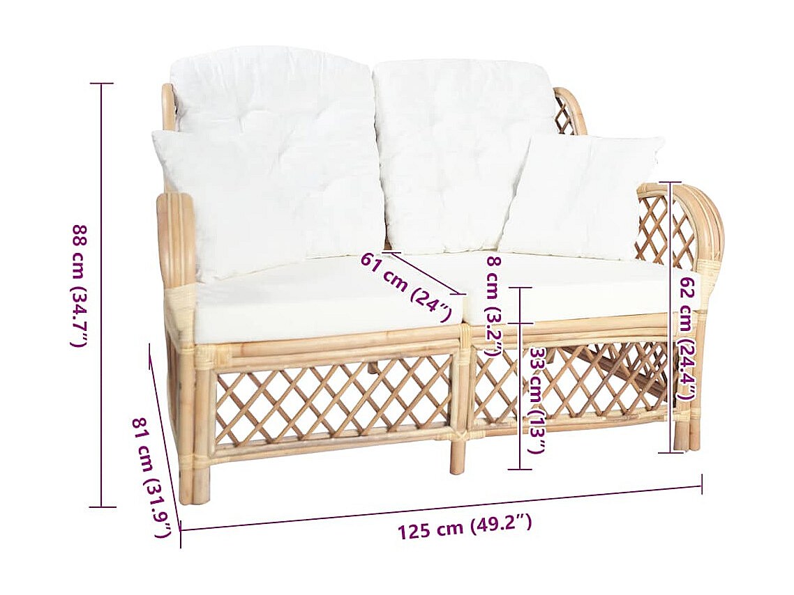 Divano da giardino 2 posti SUSUA Rattan Naturale