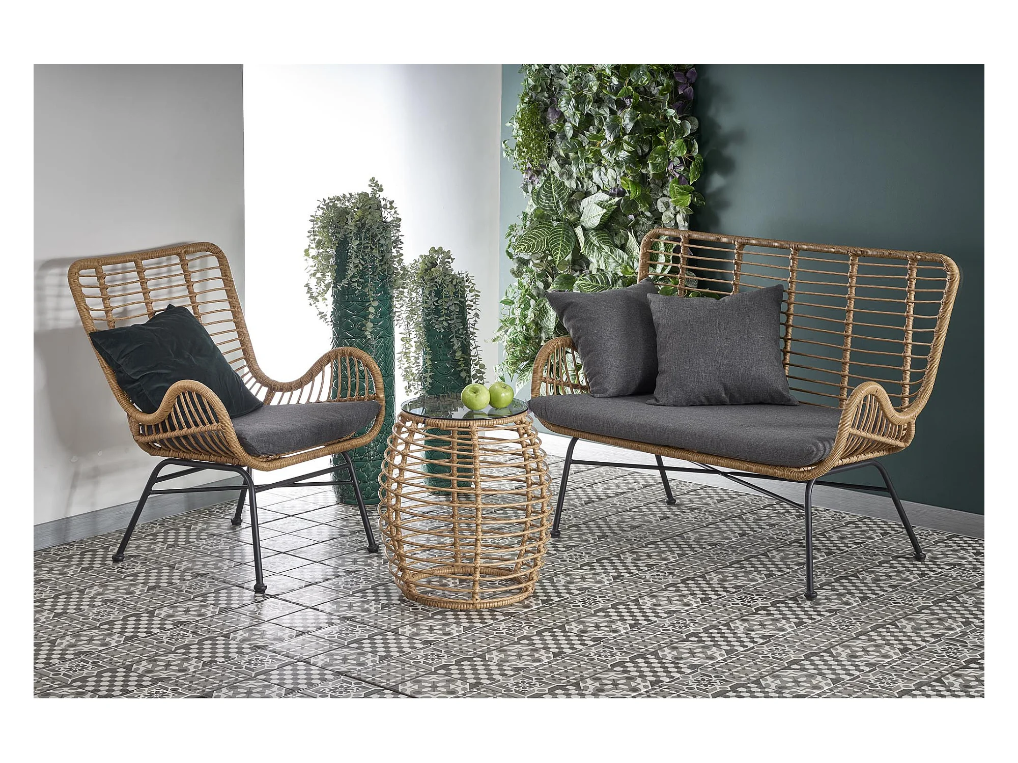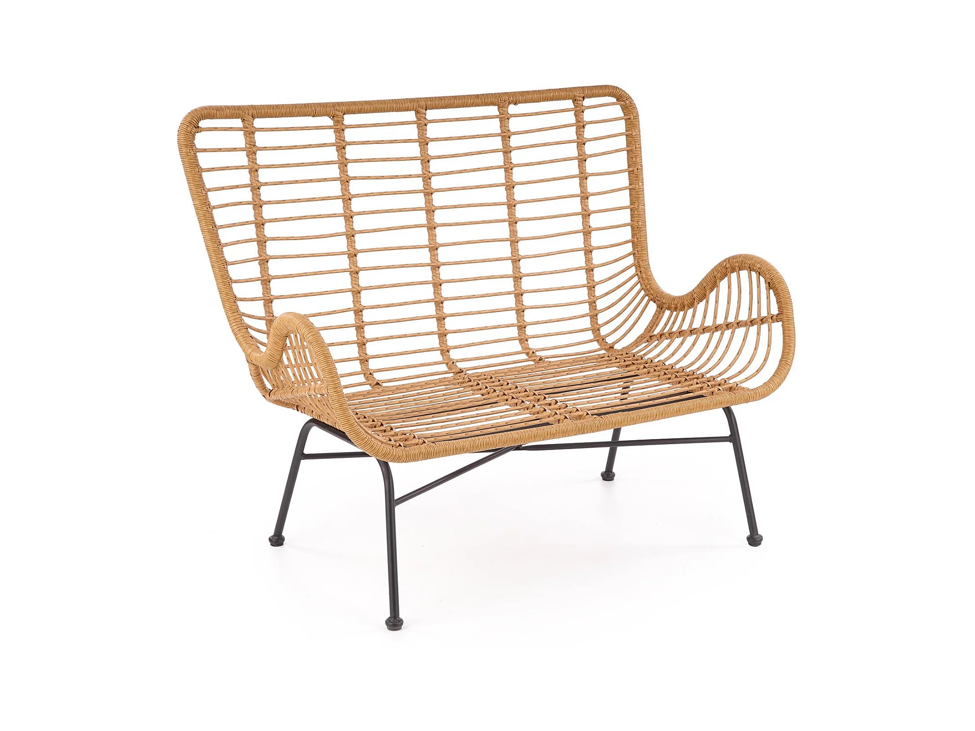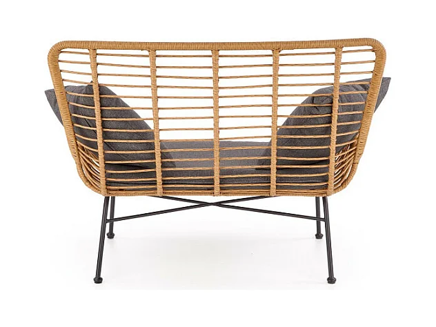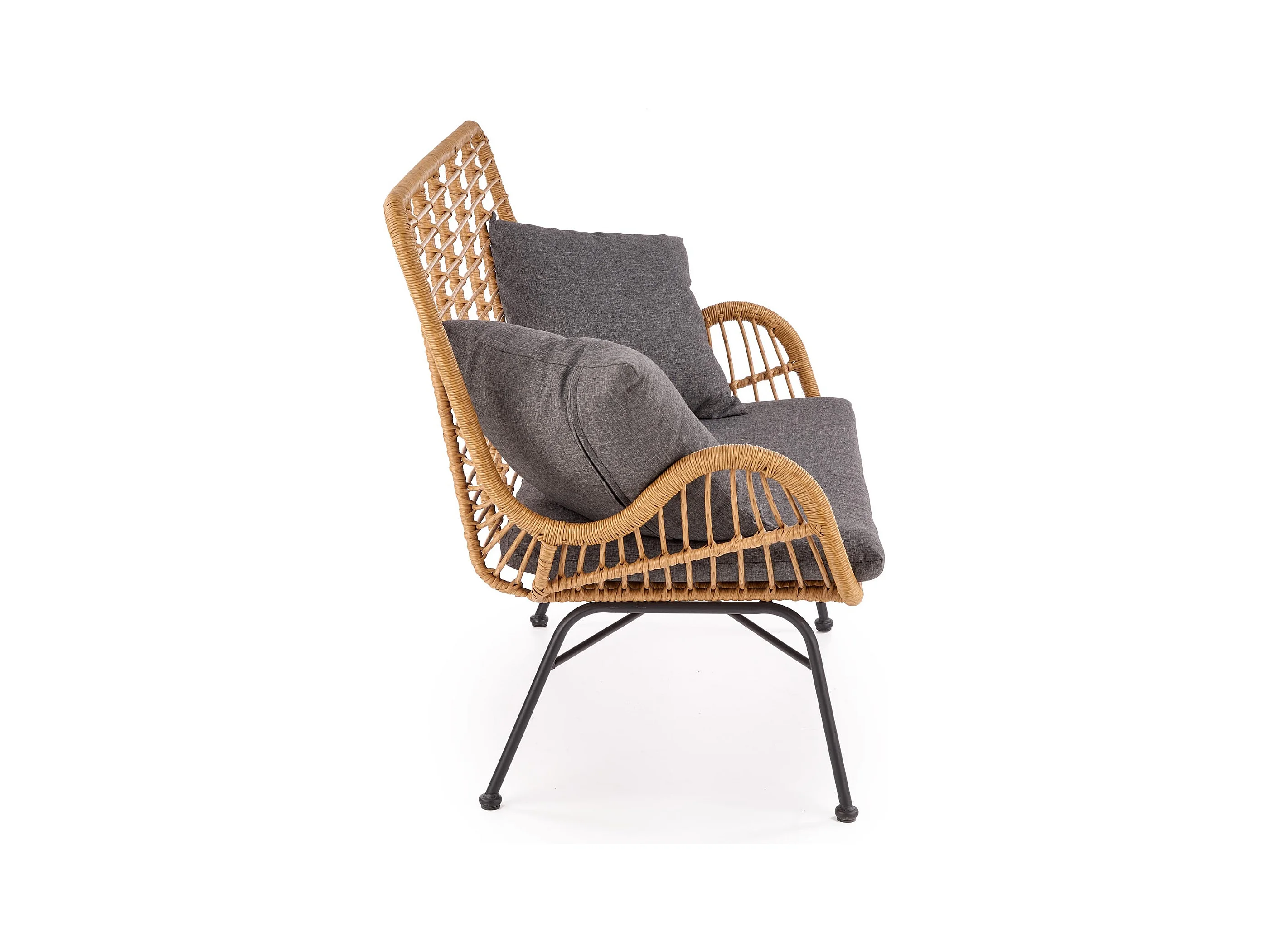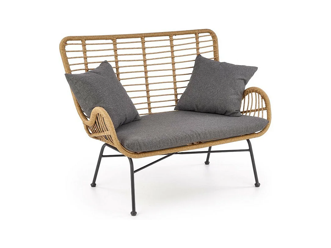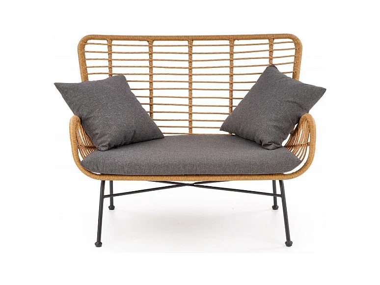 Divano a 2 posti in rattan sintetico con cuscini in tessuto grigio e struttura in metallo nero CARNAC XL