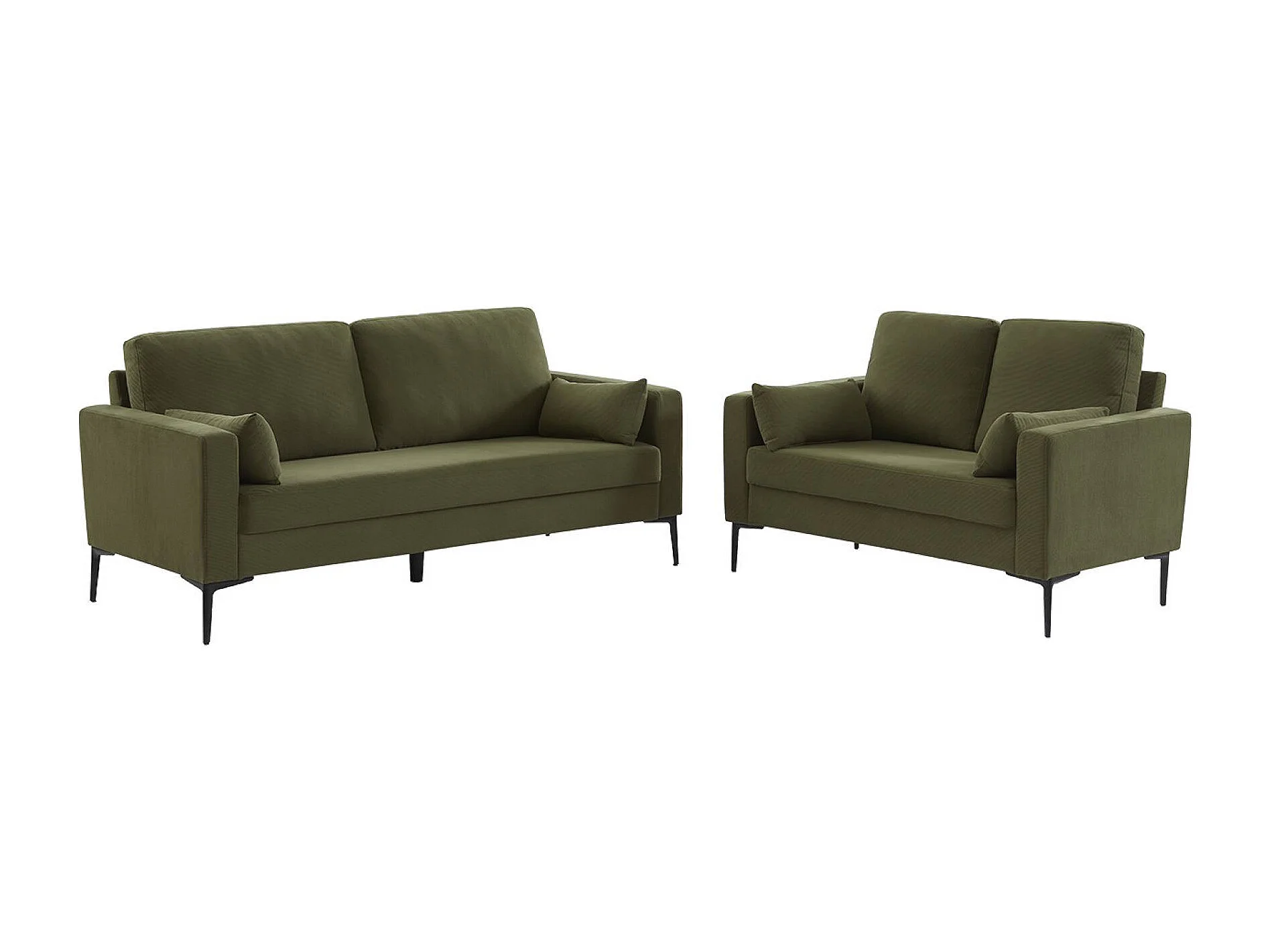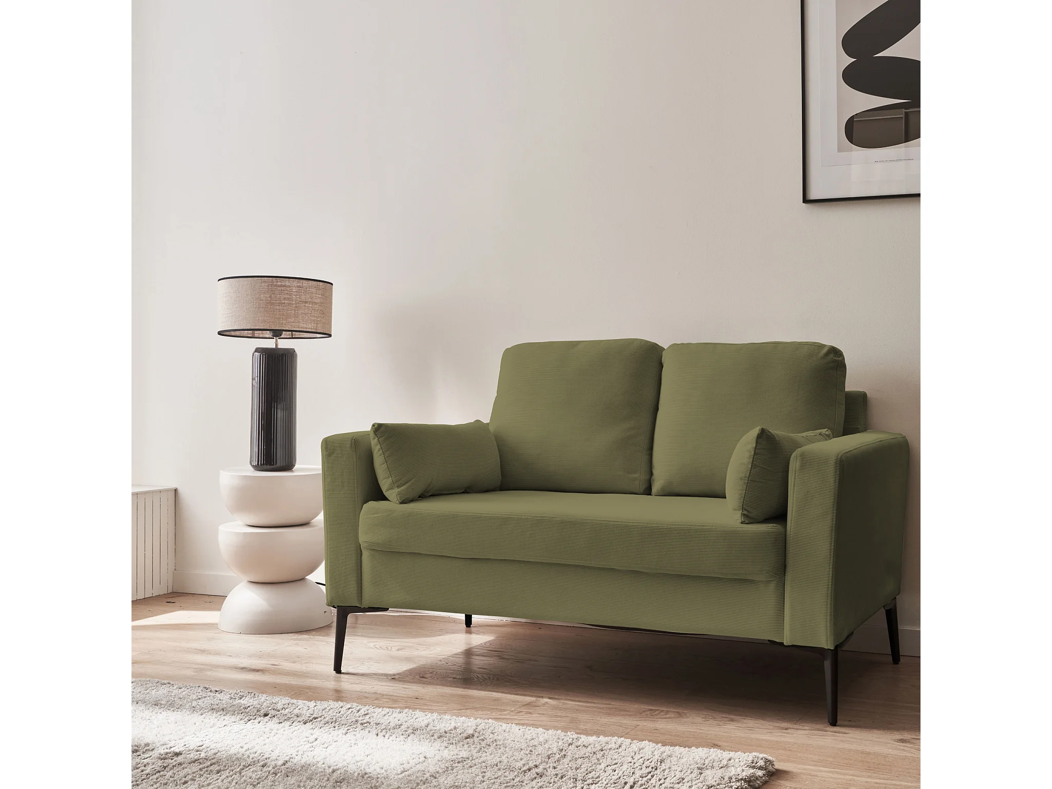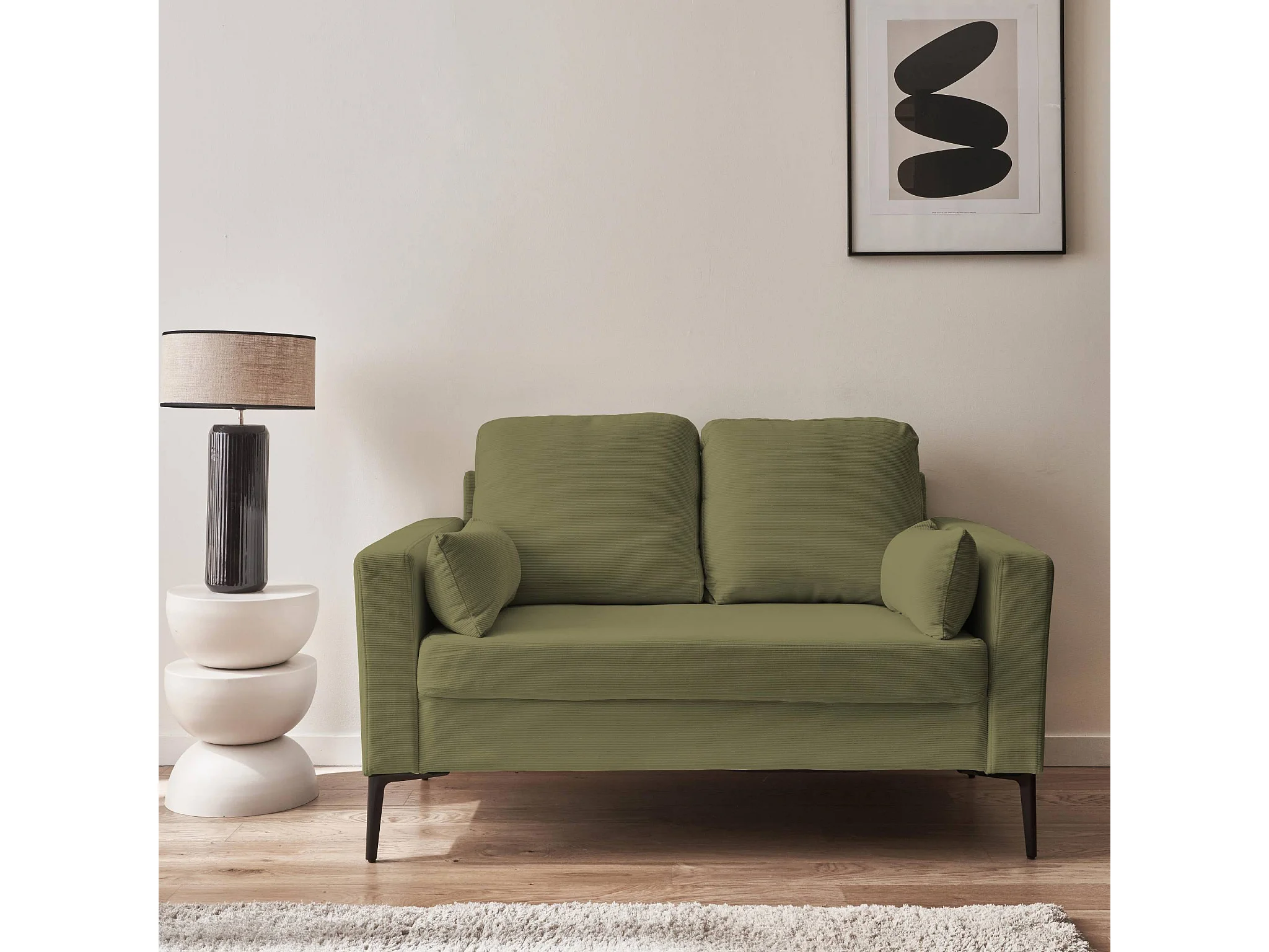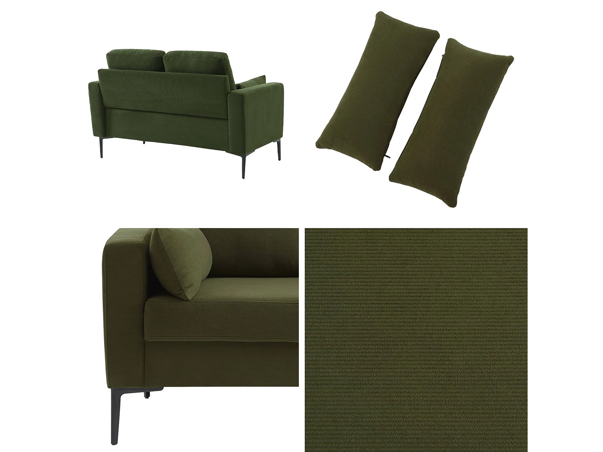 Divano in velluto a coste con gambe in metallo, 2 posti, kaki