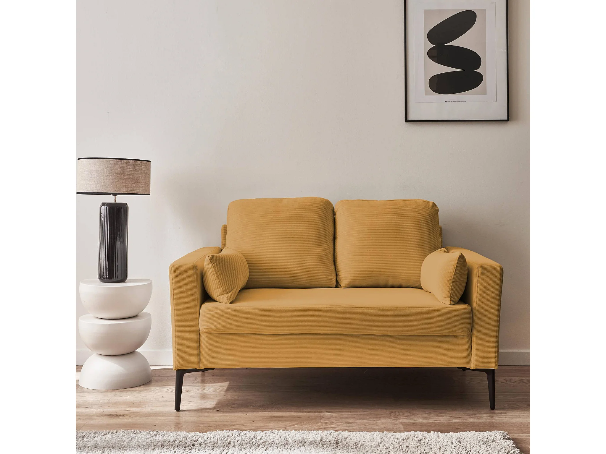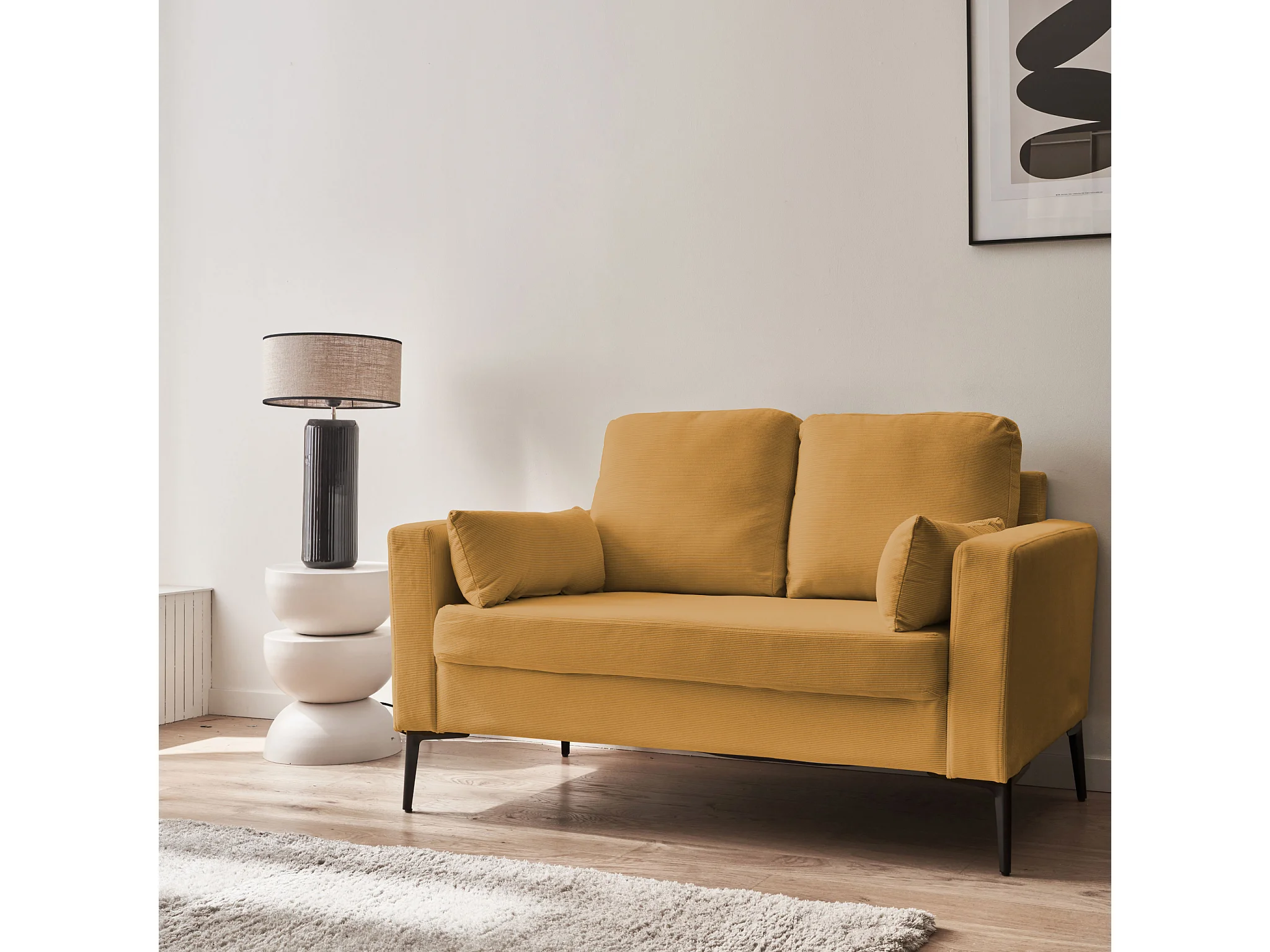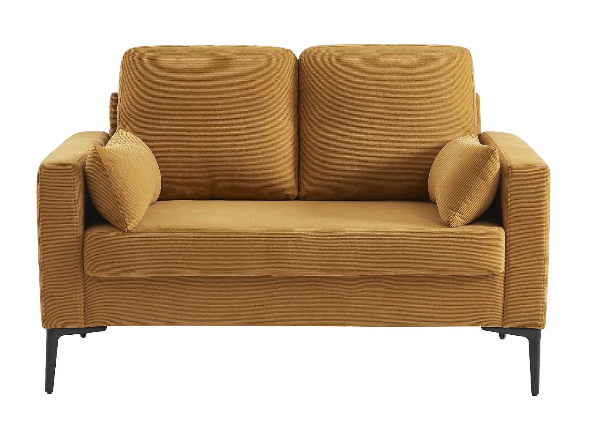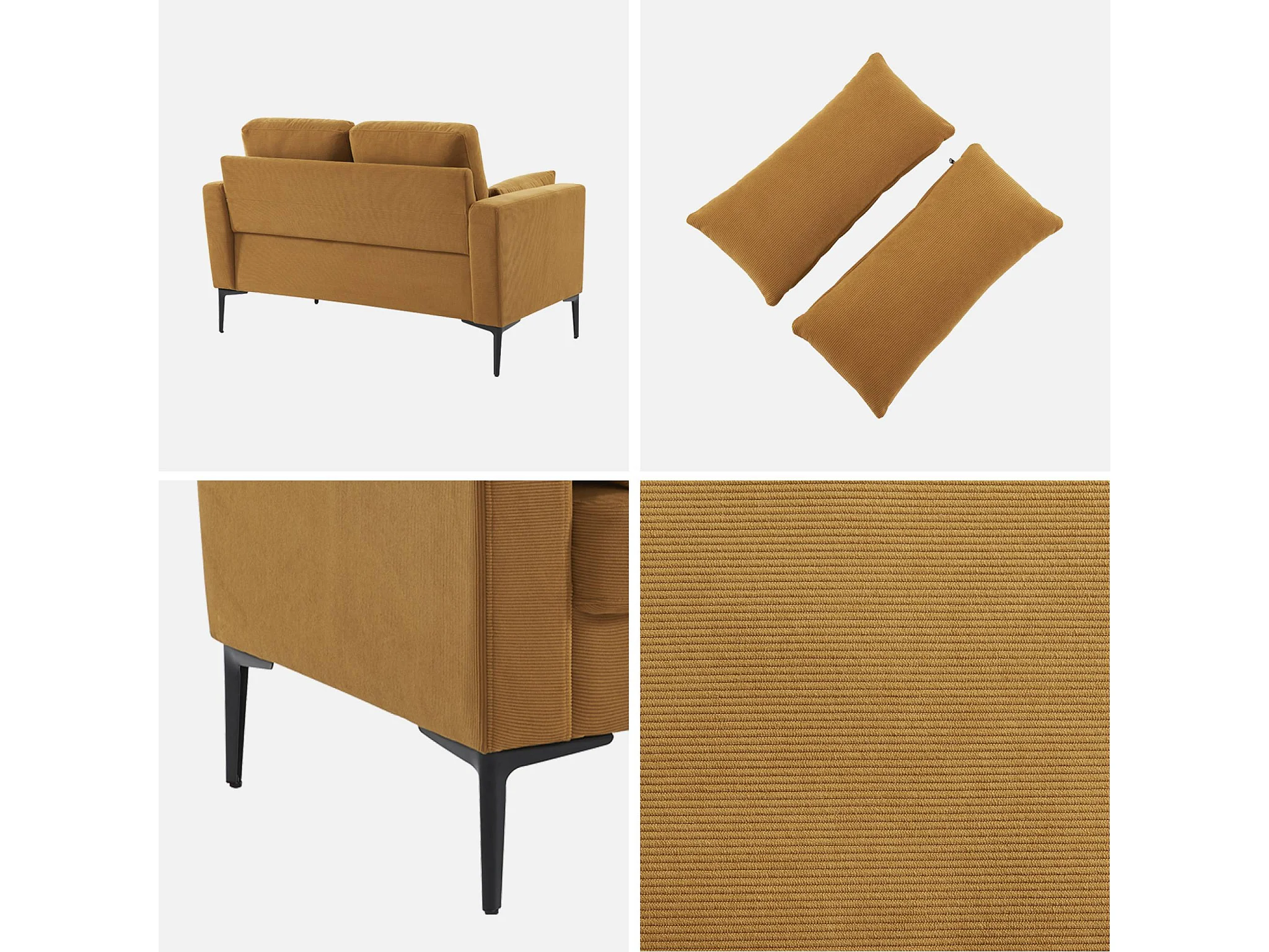 Divano in velluto a coste con gambe in metallo, 2 posti, ocra