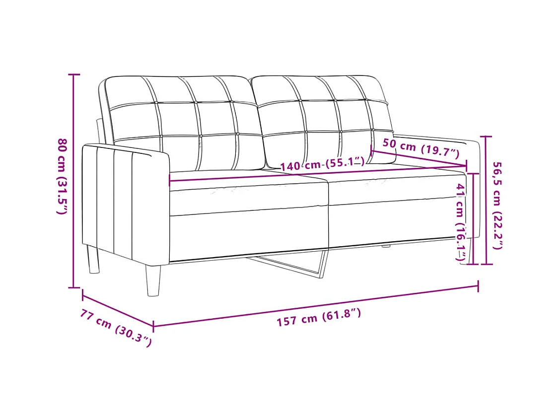 Divano a 2 Posti Cappuccino 140 cm in Similpelle