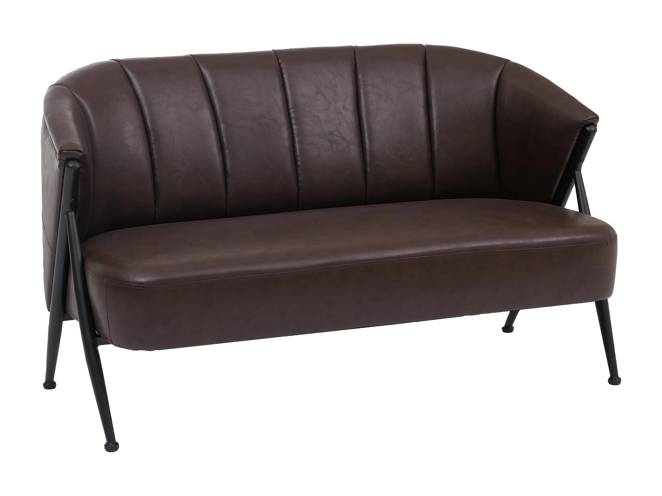 Divano a 2 posti MCW-P30, divano a due posti imbottito/lounge Couch Vintage Retro Industrial Metallo ecopelle ~ marrone scuro