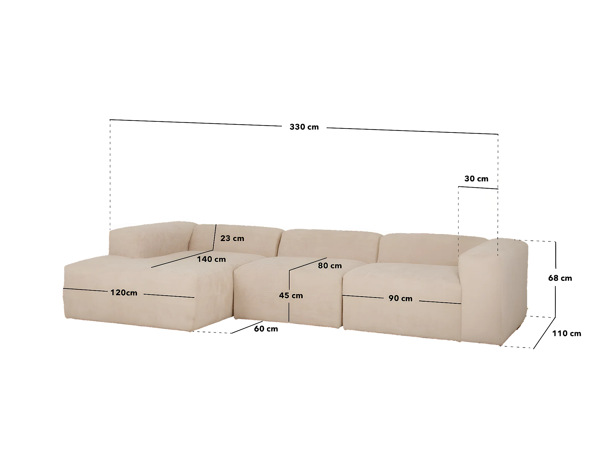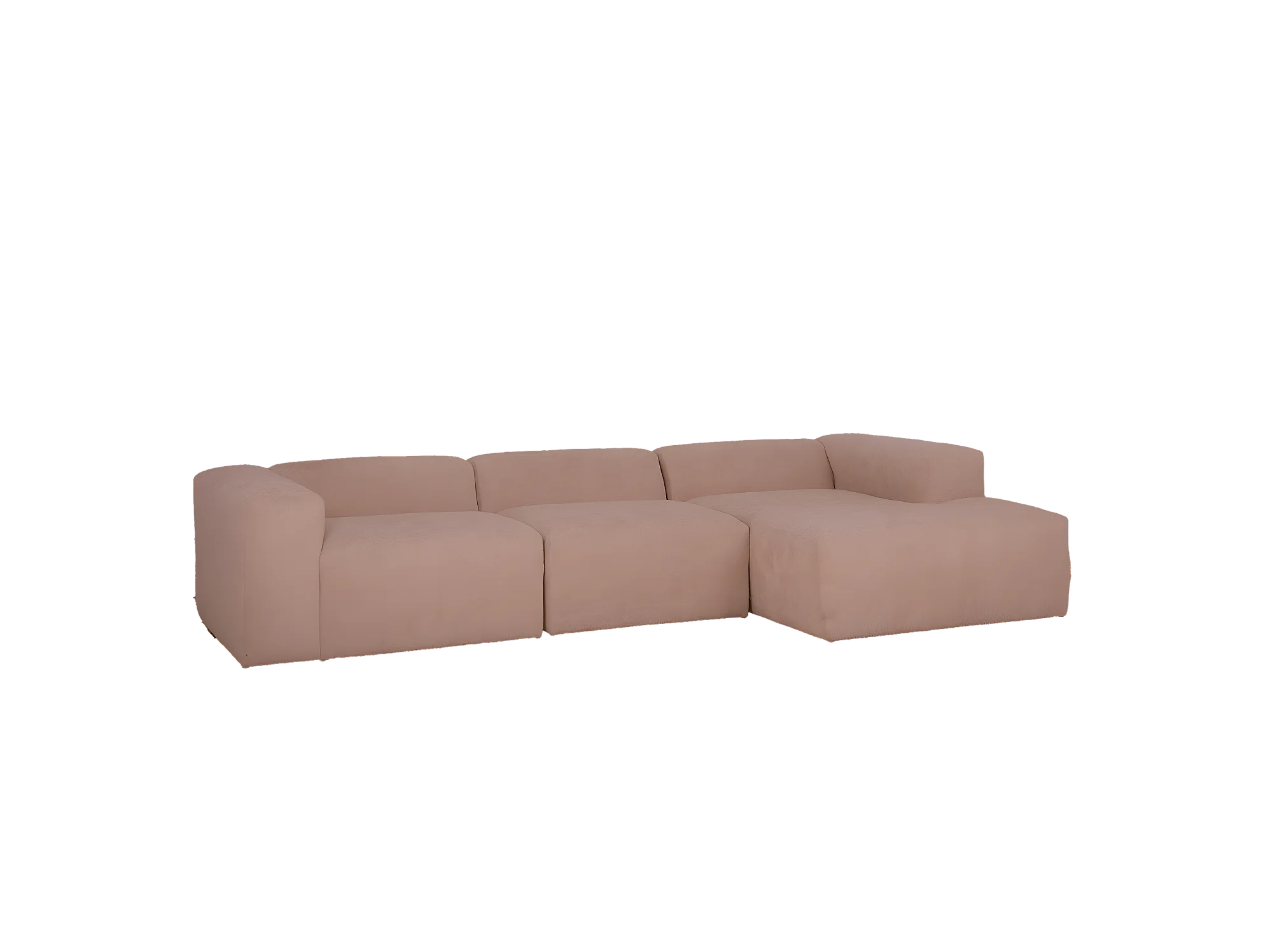 Divano a 3 moduli con CHL destra in bouclé rosa 330x172cm