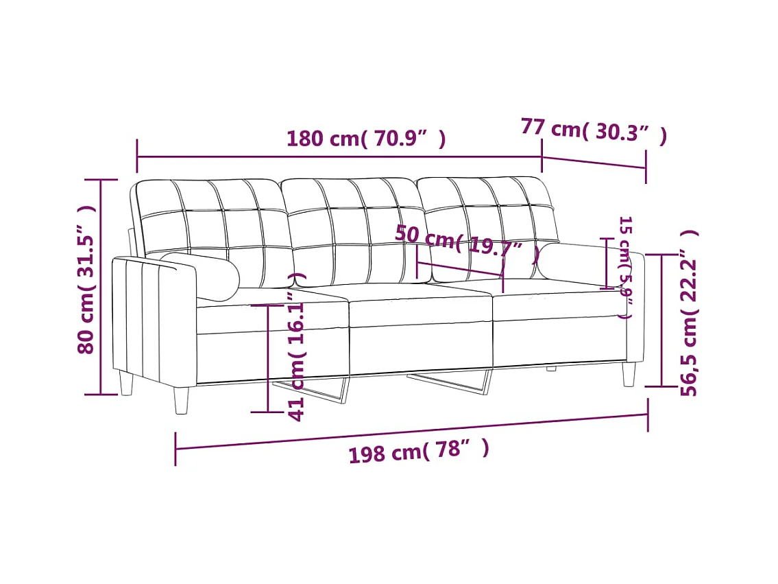 Divano a 3 Posti Giallo Chiaro 180 cm in Tessuto