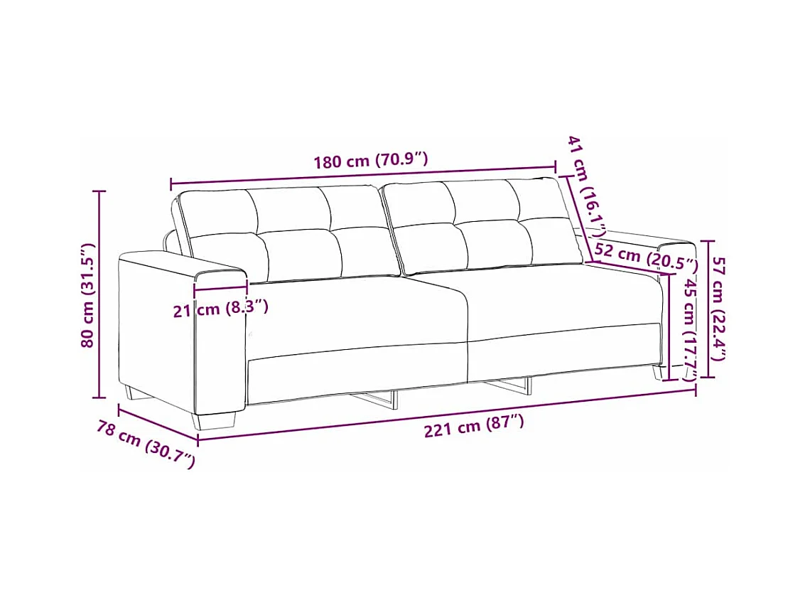 Divano a 3 posti con cuscino in tessuto grigio nuvola