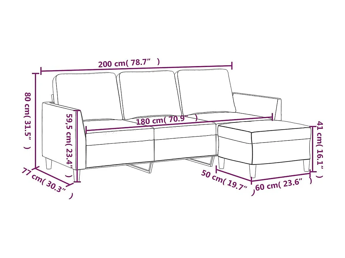 Divano a 3 Posti con Poggiapiedi Tortora 180 cm in Tessuto