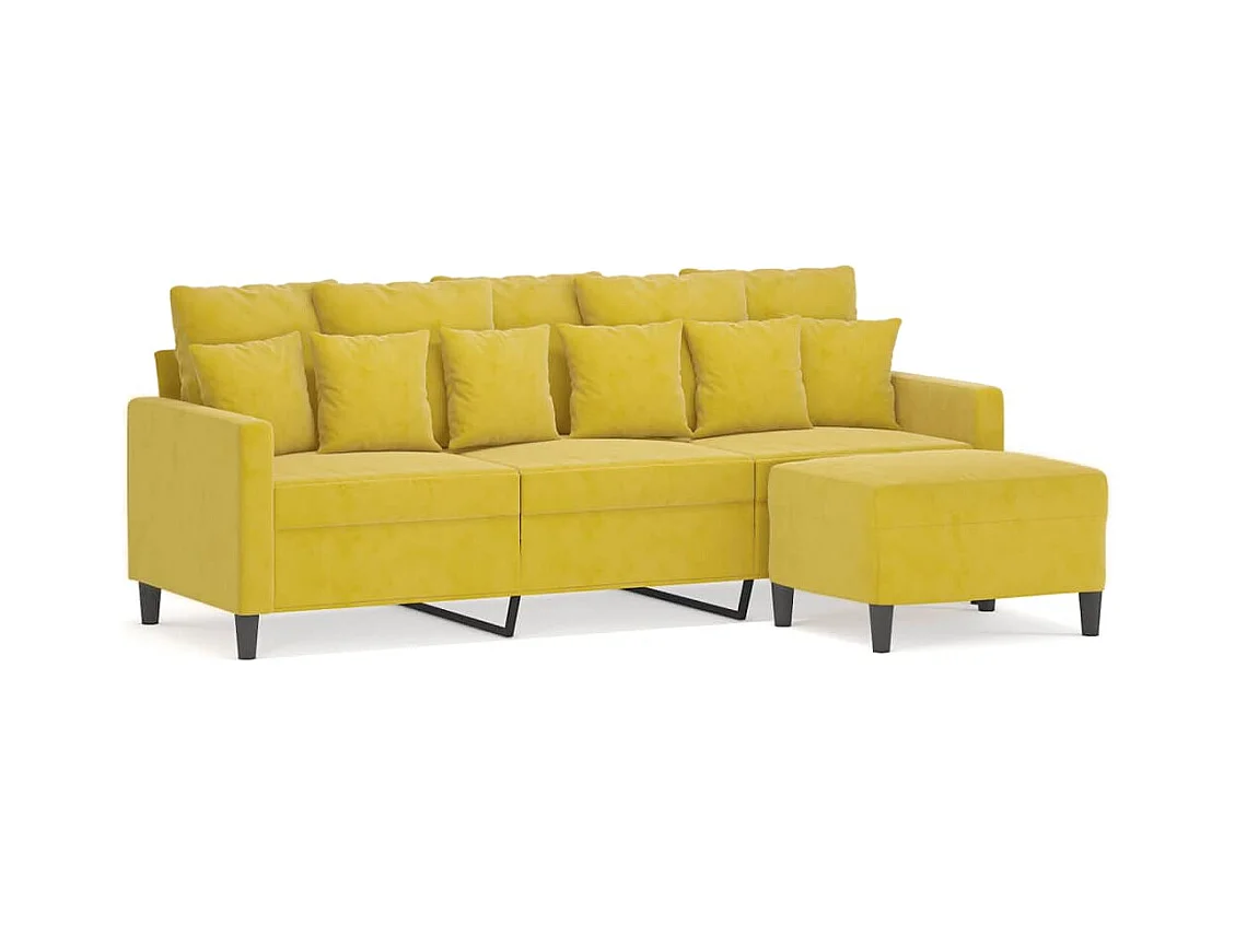 Divano a 3 Posti con Poggiapiedi Giallo 180cm in Velluto