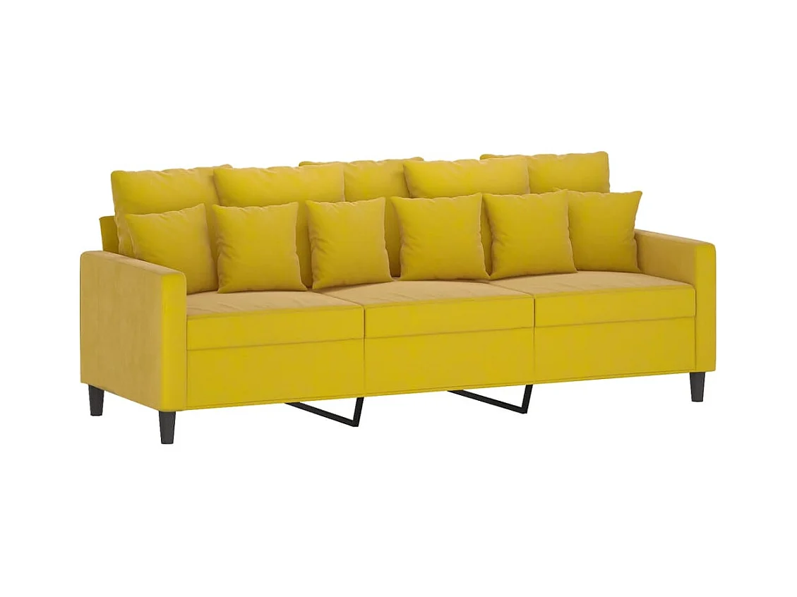 Divano a 3 Posti con Cuscini Giallo Chiaro 180 cm in Tessuto