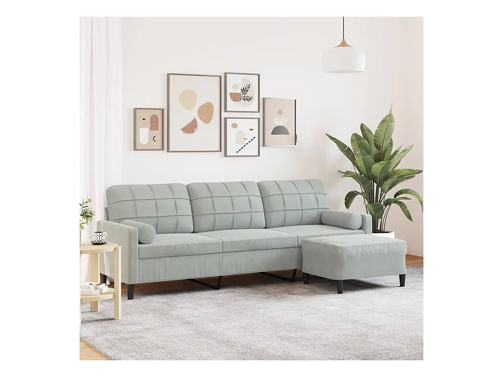 Divano a 3 Posti con Poggiapiedi Grigio Chiaro 210cm in Velluto