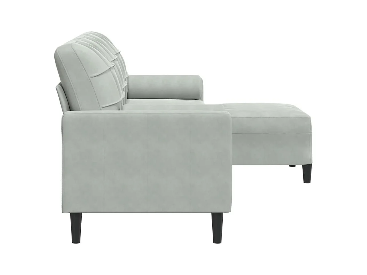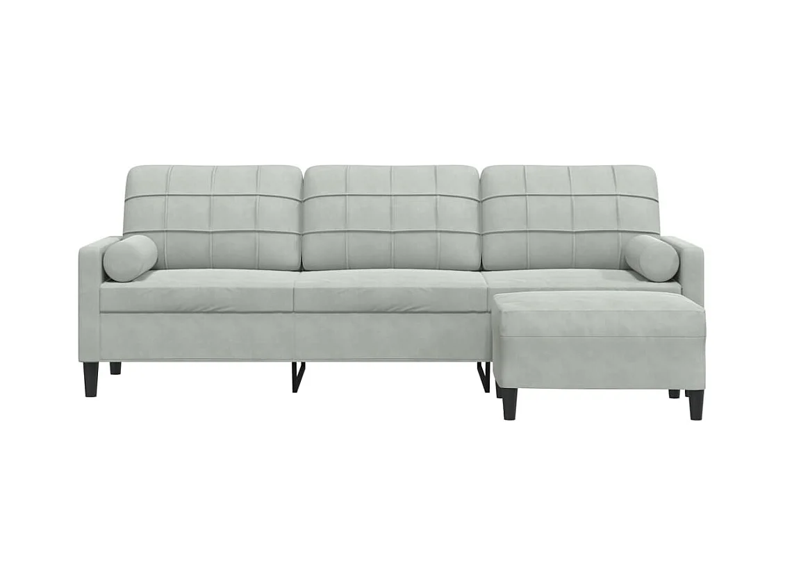 Divano a 3 Posti con Poggiapiedi Grigio Chiaro 180cm in Velluto