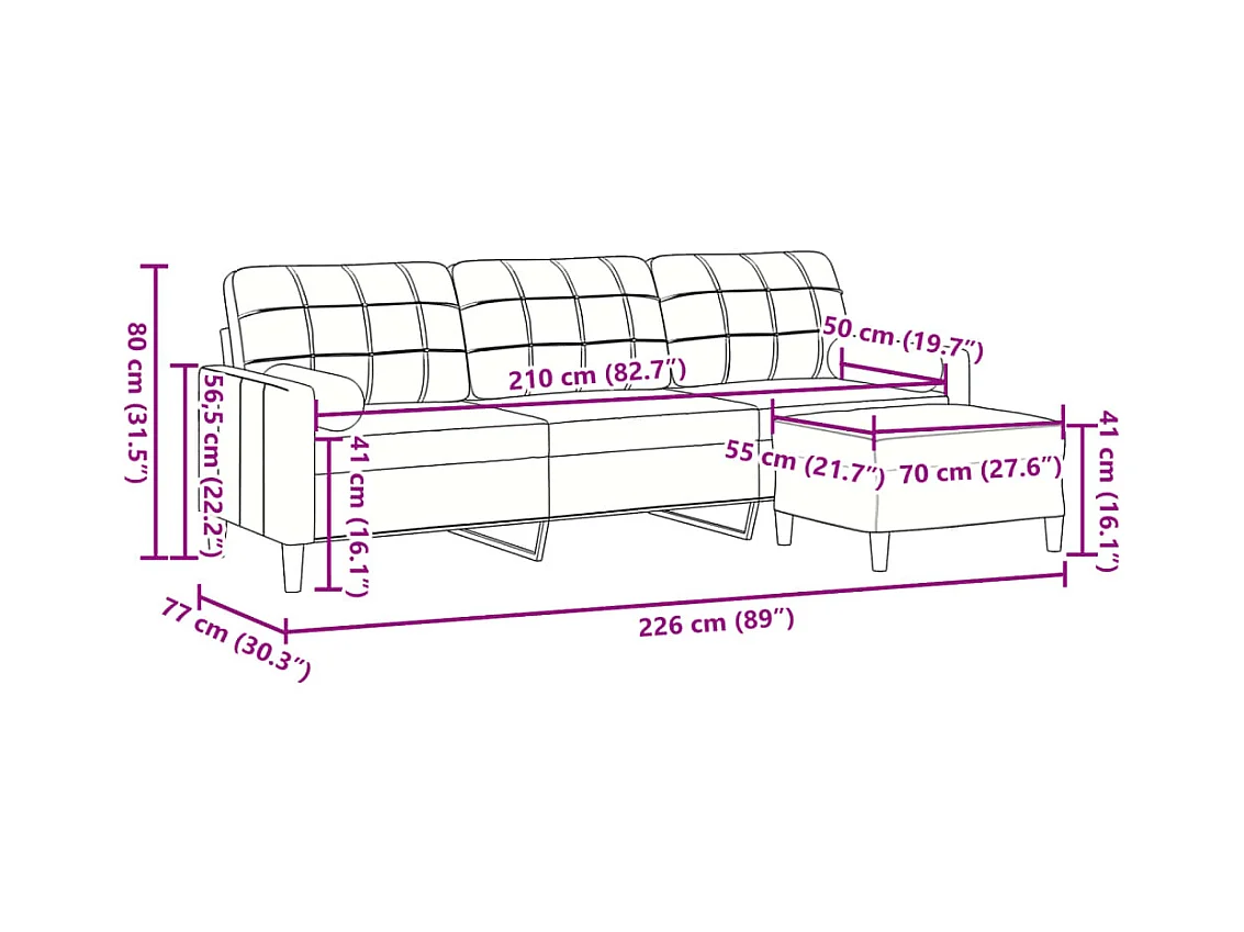 Divano a 3 Posti con Poggiapiedi Grigio Scuro 210cm in Tessuto
