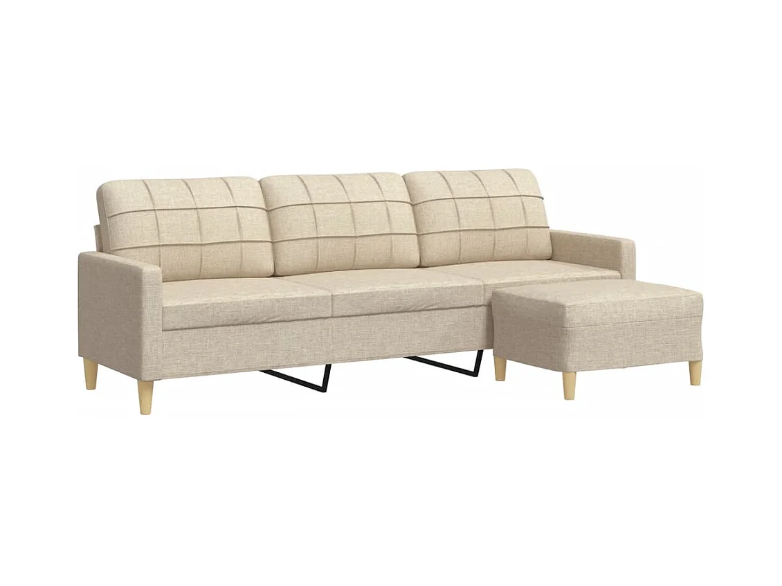 Divano a 3 posti con poggiapiedi in tessuto color crema da 210 cm