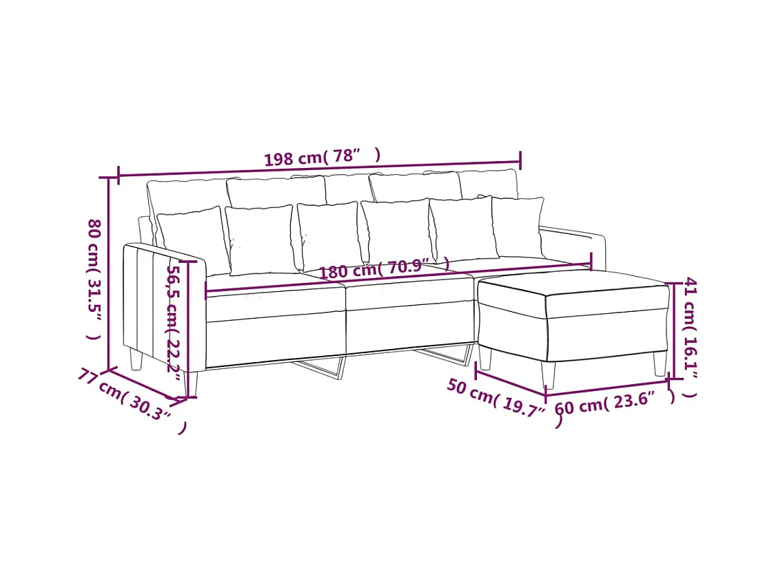 Divano a 3 Posti con Poggiapiedi Rosso Vino 180 cm in Tessuto