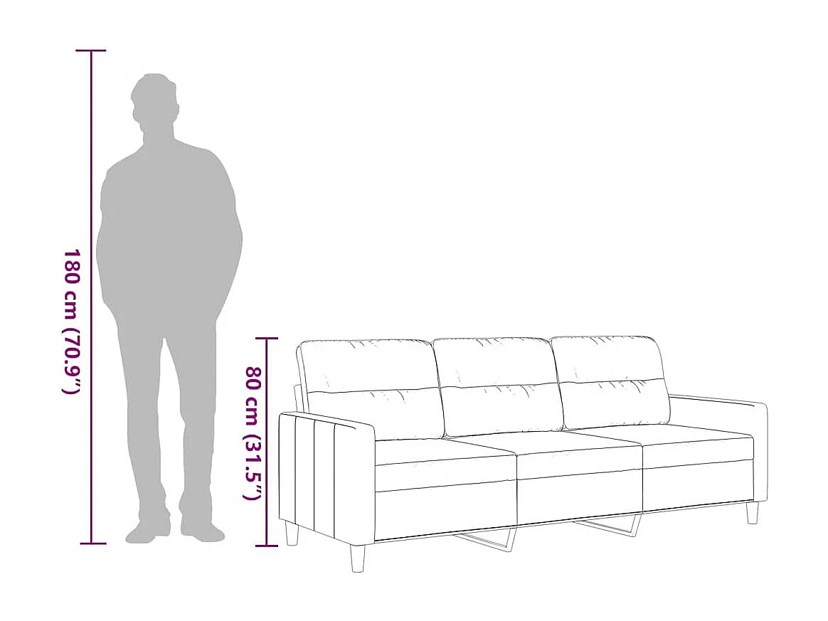 Divano a 3 Posti Crema 180 cm in Tessuto