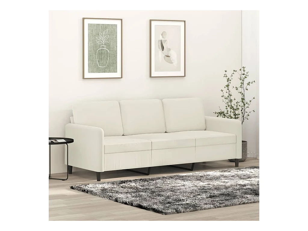 Divano a 3 Posti Crema 180 cm in Tessuto