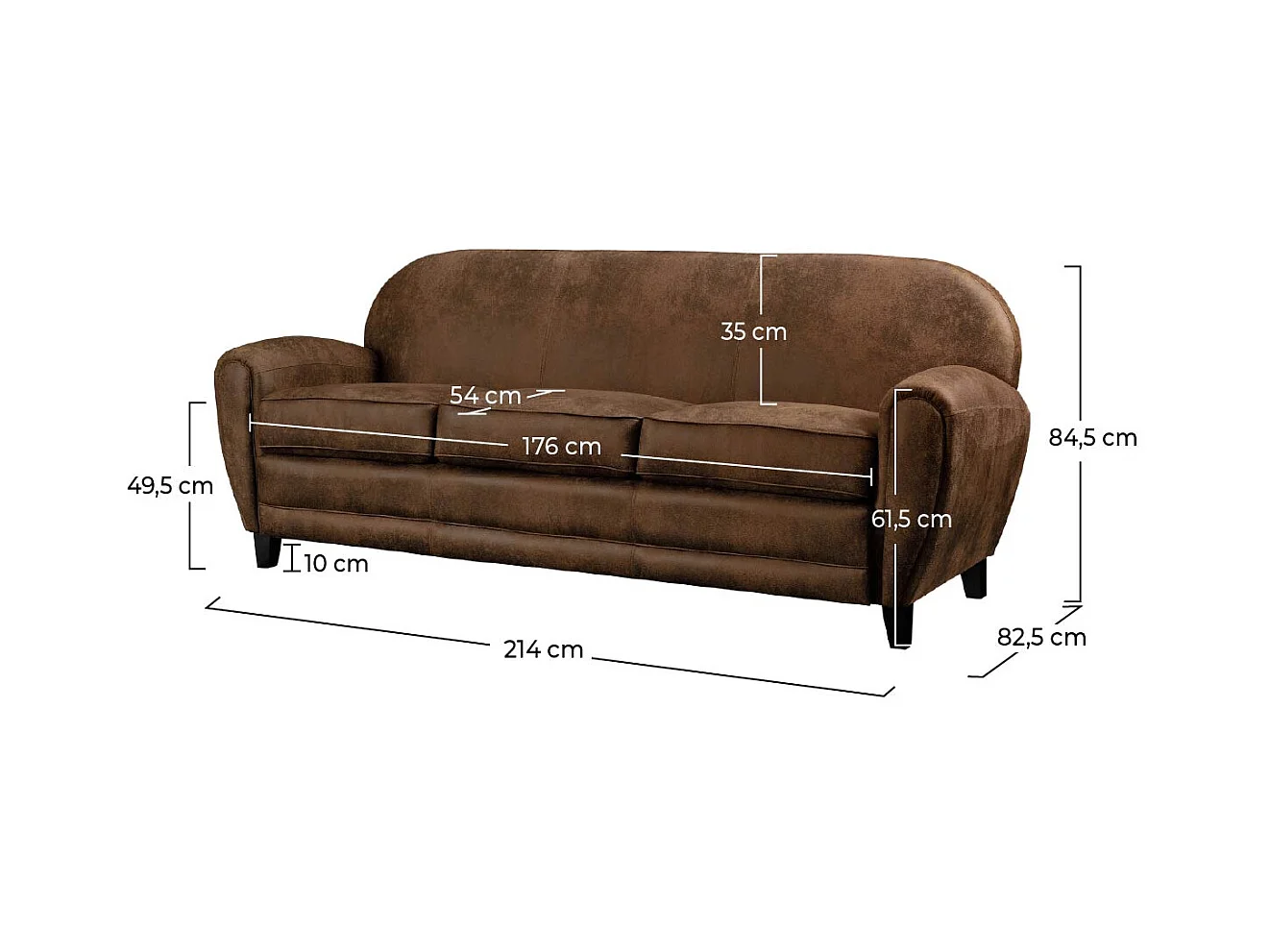Divano a 3 posti in microfibra marrone - Club