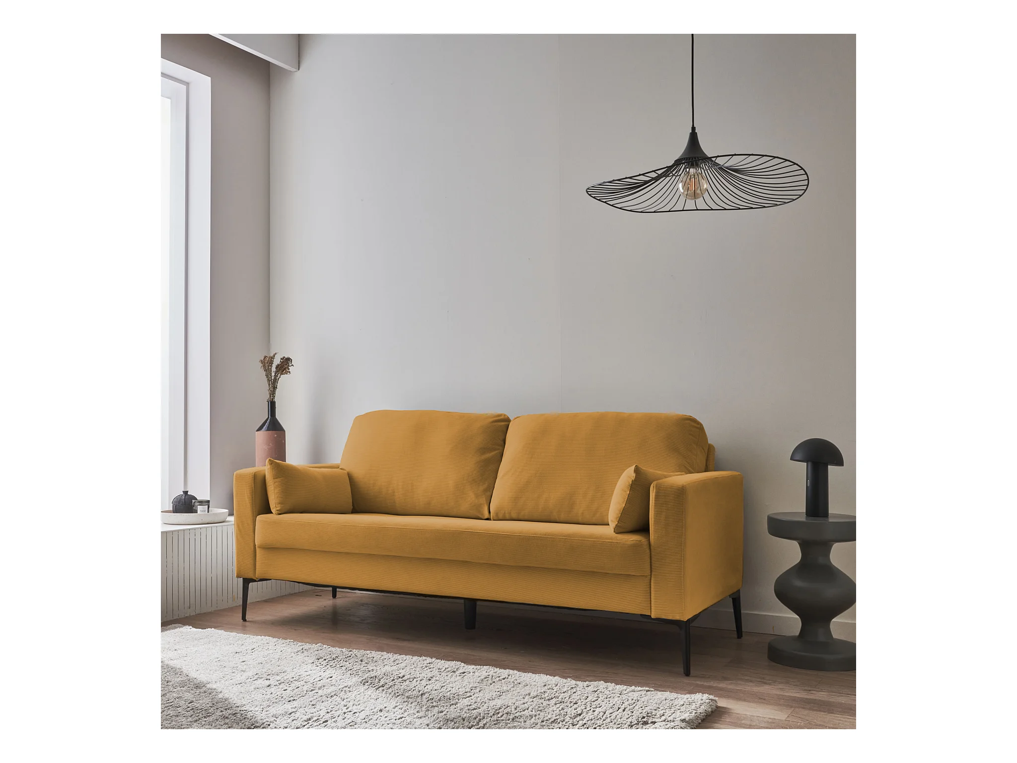 Divano a 3 posti in velluto a coste, gambe in metallo, ocra