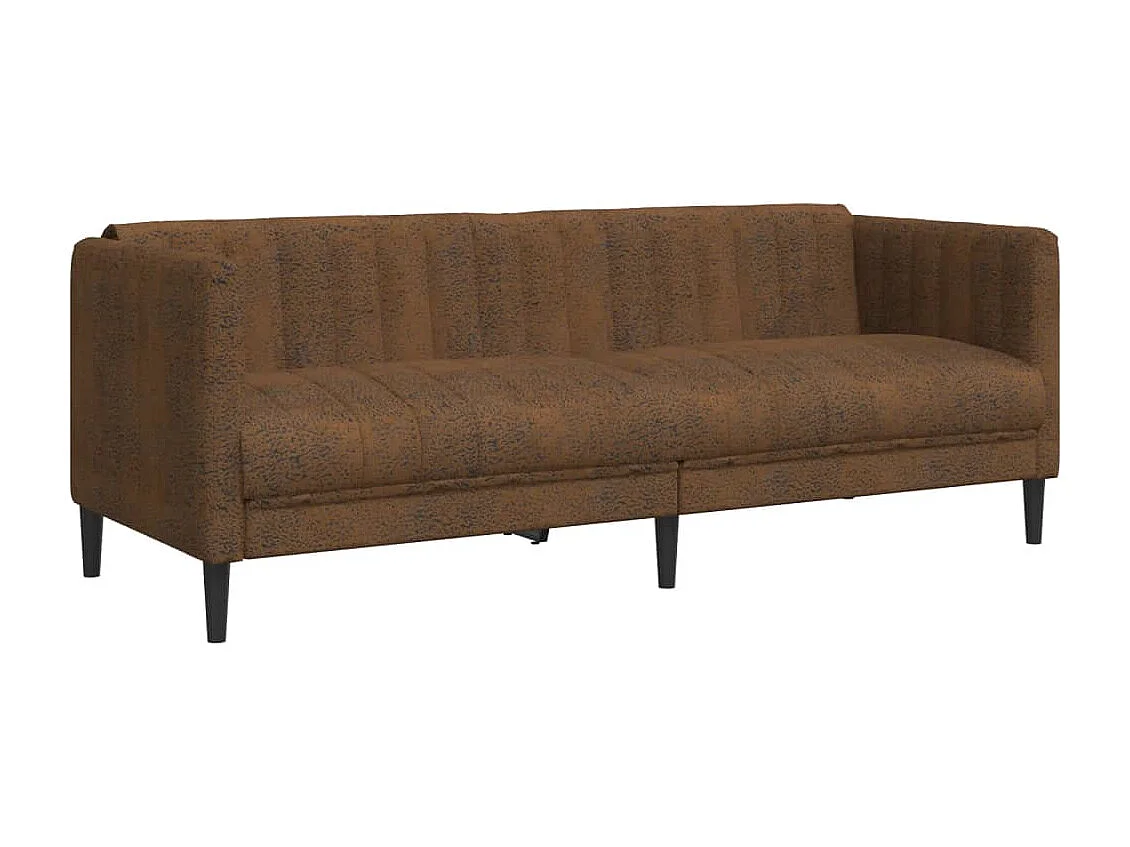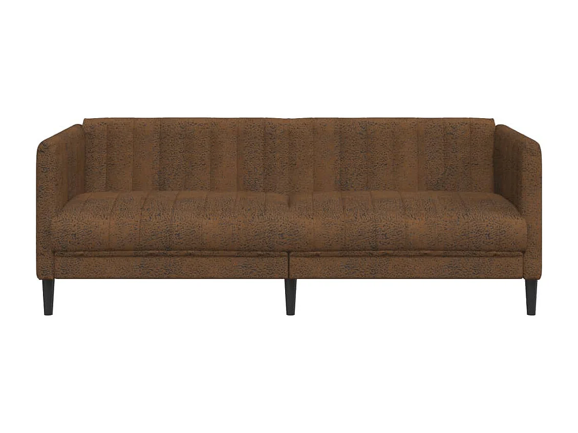 Divano a 3 Posti Marrone in Similpelle Scamosciata