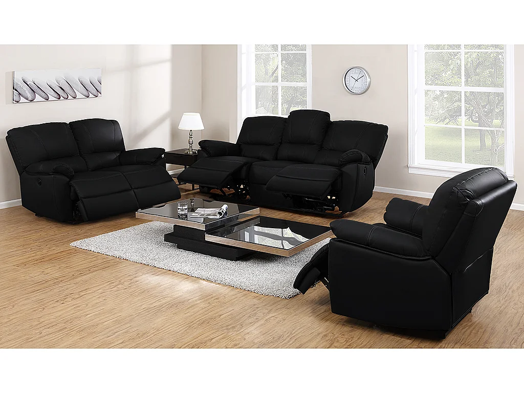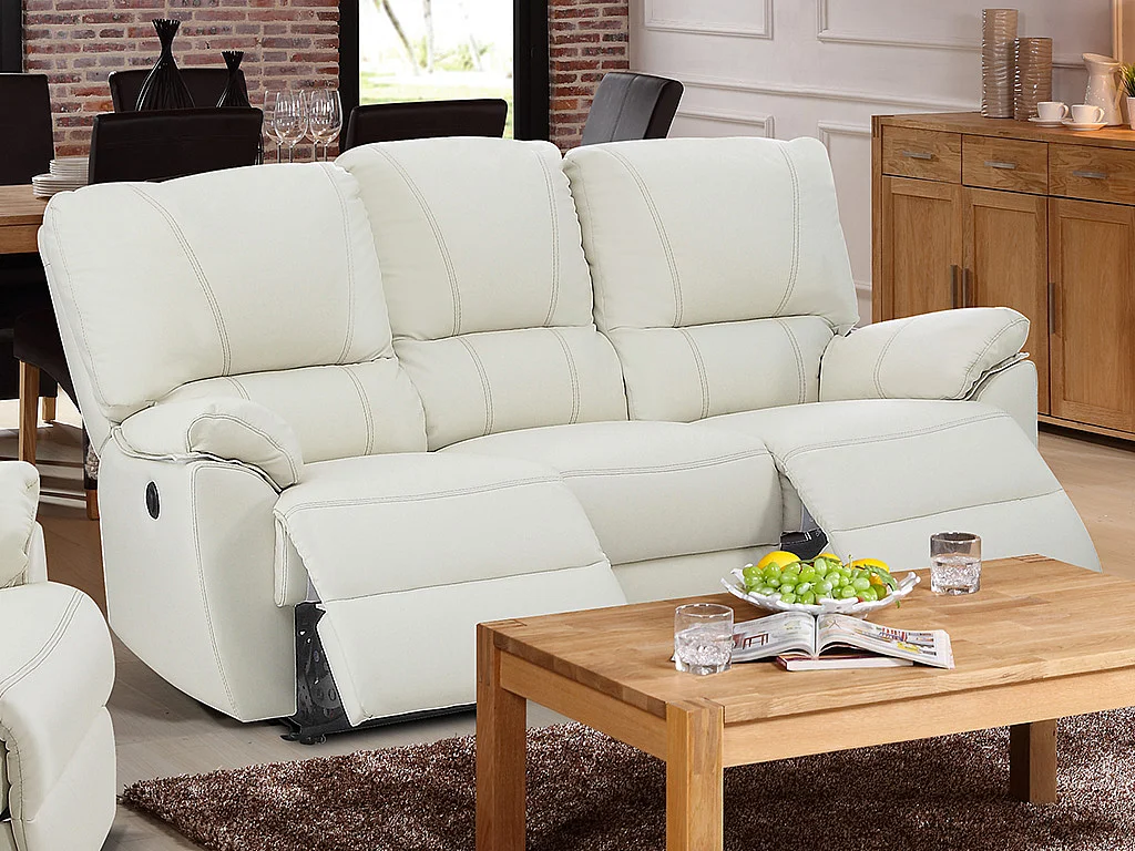 Divano relax 3 posti elettrico in cuoio Avorio - MARCIS